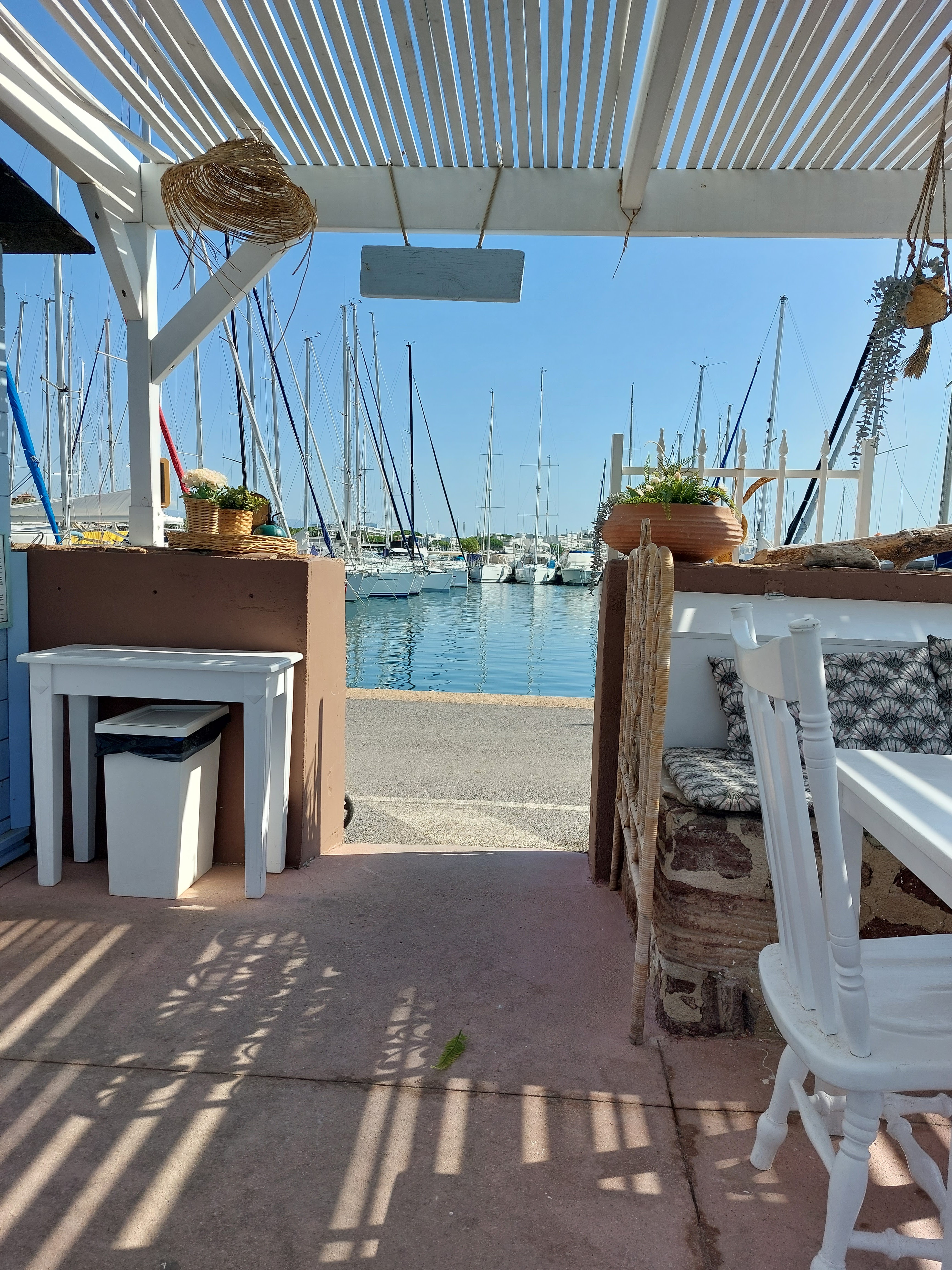 J’adore cet endroit au bord de la mer accès facile passerelle pour se baigner et douche extérieure pour se rincer Service rapide au comptoir, produits frais, prix raisonnables espèces ou chèque seulement Accès par le port de Mandelieu possibilité de se garer payant
