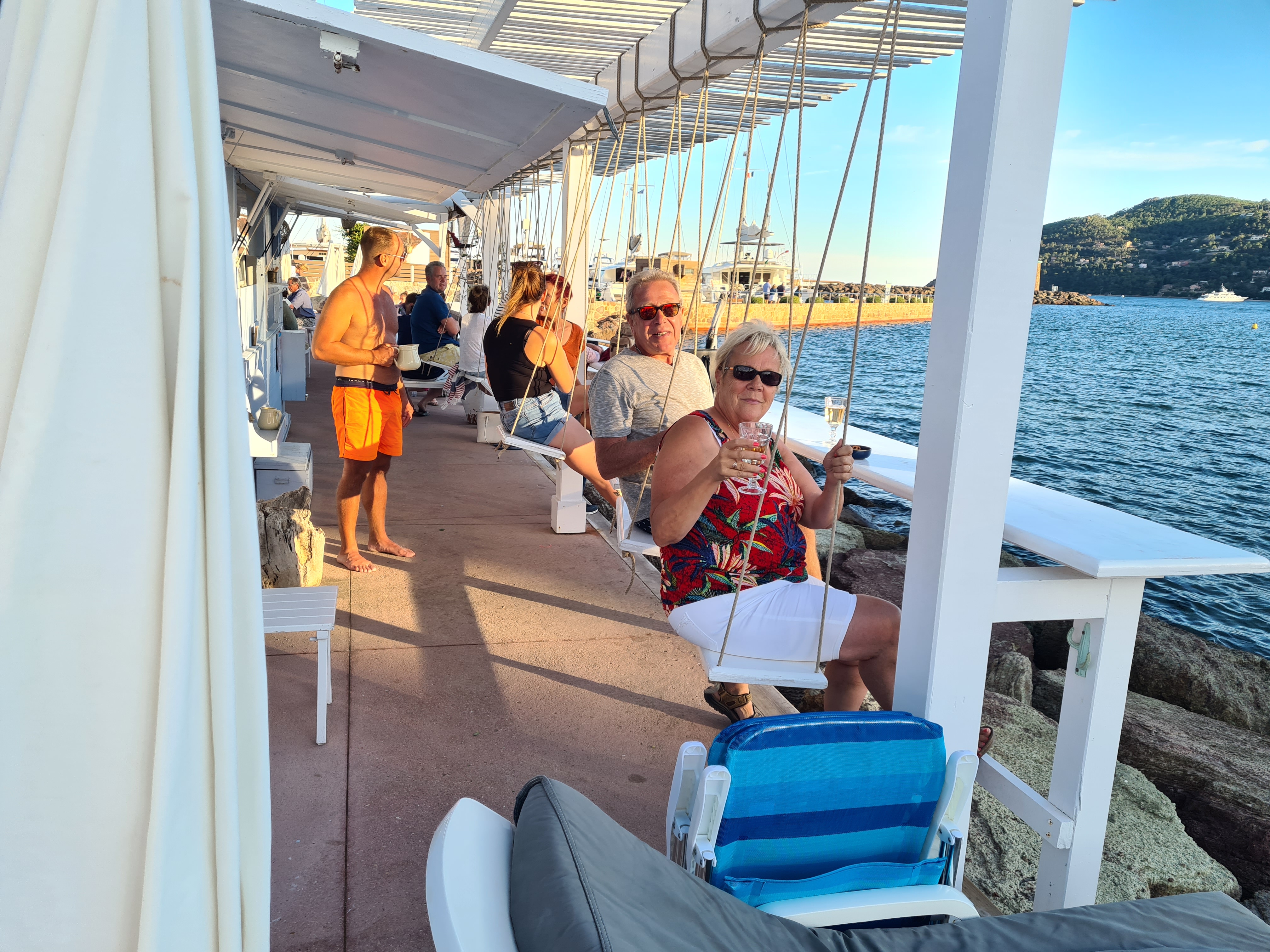 Moment de détente insolite face au Château de la Napoule et sa baie.. Concept simple efficace agréable .Personnel souriant. N'hésitez pas à déguster une glace sur les balançoires face à la mer ou boire un verre et grignoter un snack sur les banquettes aux multiples coussins. Une belle découverte!