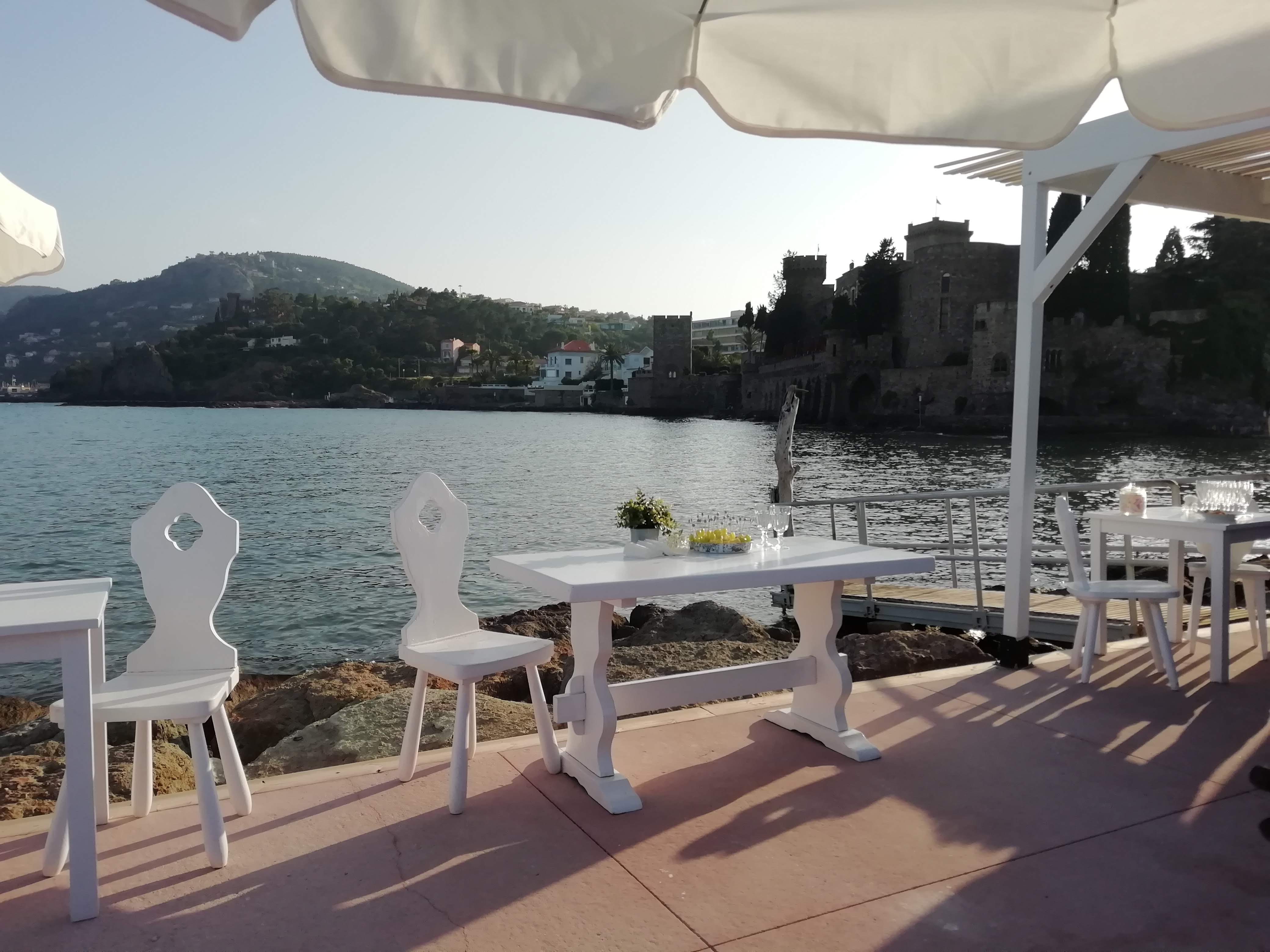Sympathique lieu de détente, ambiance cocooning bien aménagé , de petites tables ,transats , ainsi qu'un comptoir face à la mer où les tabourets sont transformés en balancelles. Face à la petite baie du château de la Napoule vue magnifique sur l'Esterel. On peut y manger ou y prendre simplement un verre avant ,après, ou pendant la baignade puisque une petite passerelle permet d'aller se baigner.