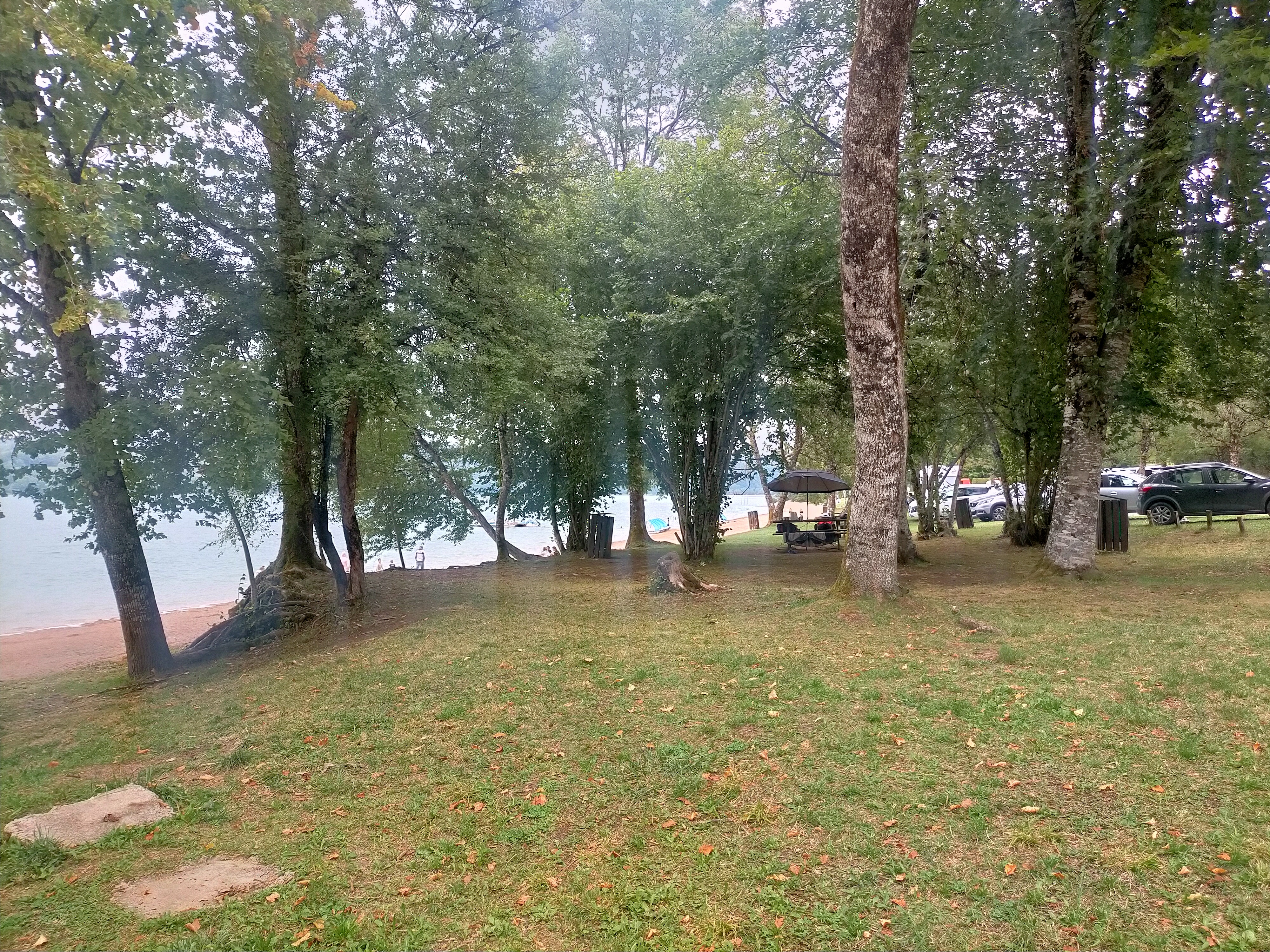 Posté le 22/06/2023 à 08:36"Une belle journée passée au lac. En haute saison il vaut mieux arriver le matin à l'ouverture à 10h pour faire du pédalo à la fraîche (20 EUR l'heure de pédalo quand même...). Des arbres permettent de pique niquer à l'ombre. La plage de sable est très petite (environ 1 m de sable). C'est suffisant pour permettre aux enfants de jouer."
