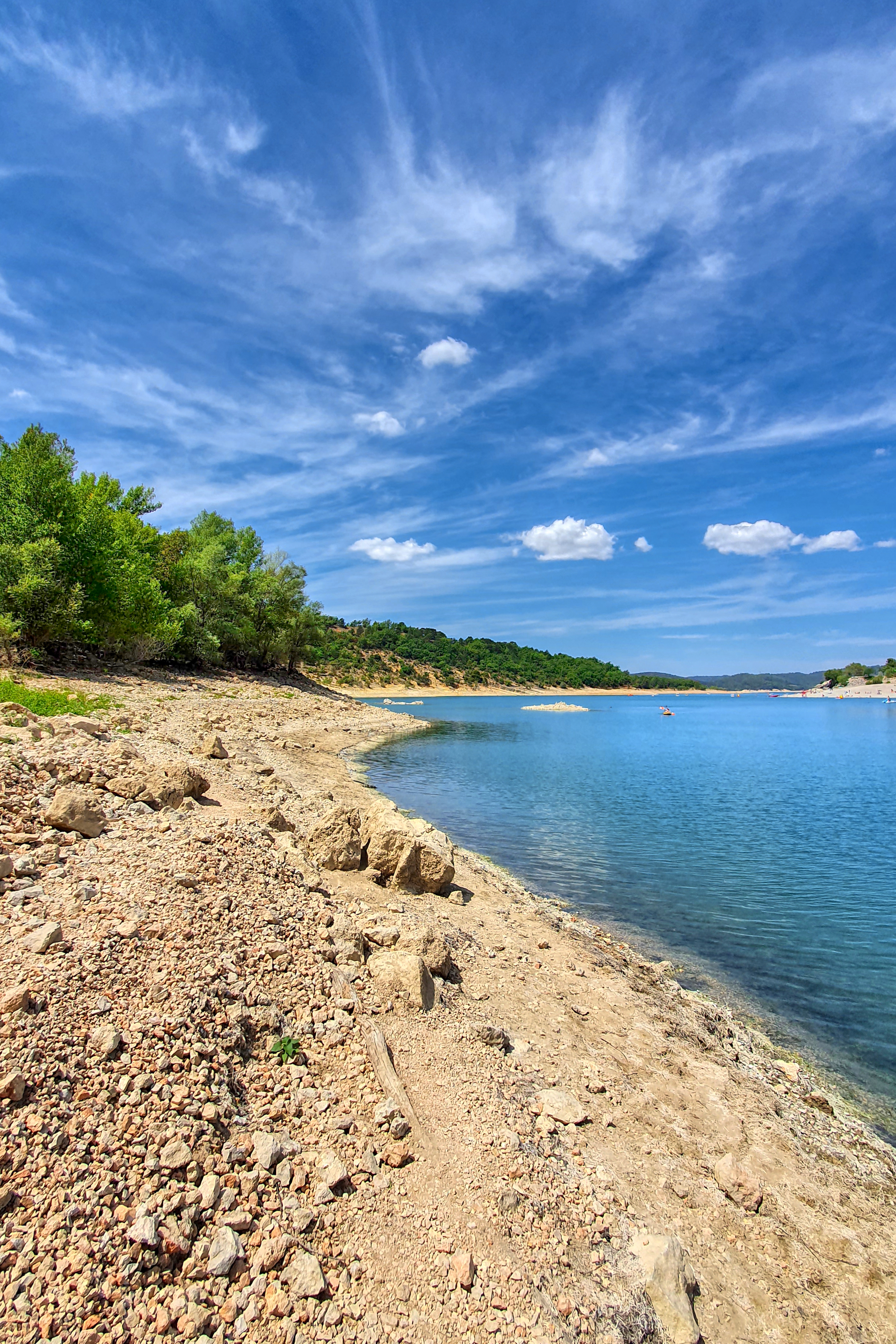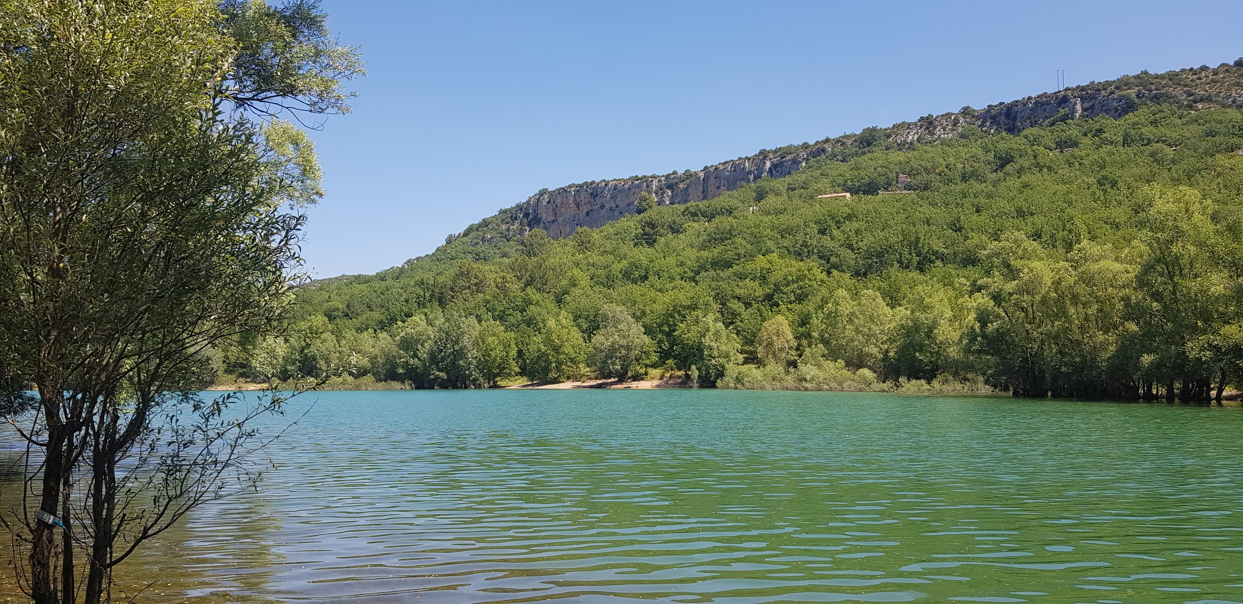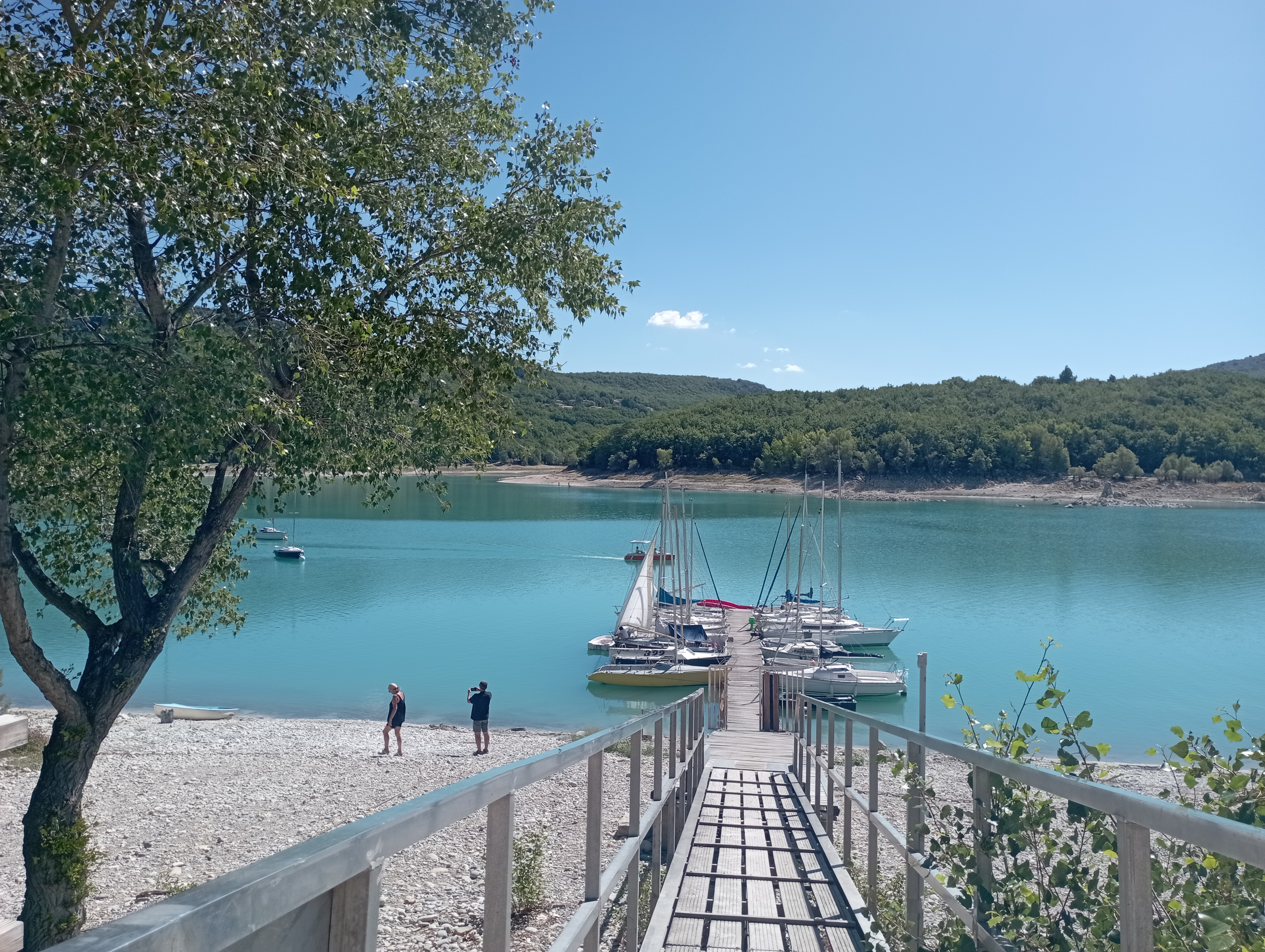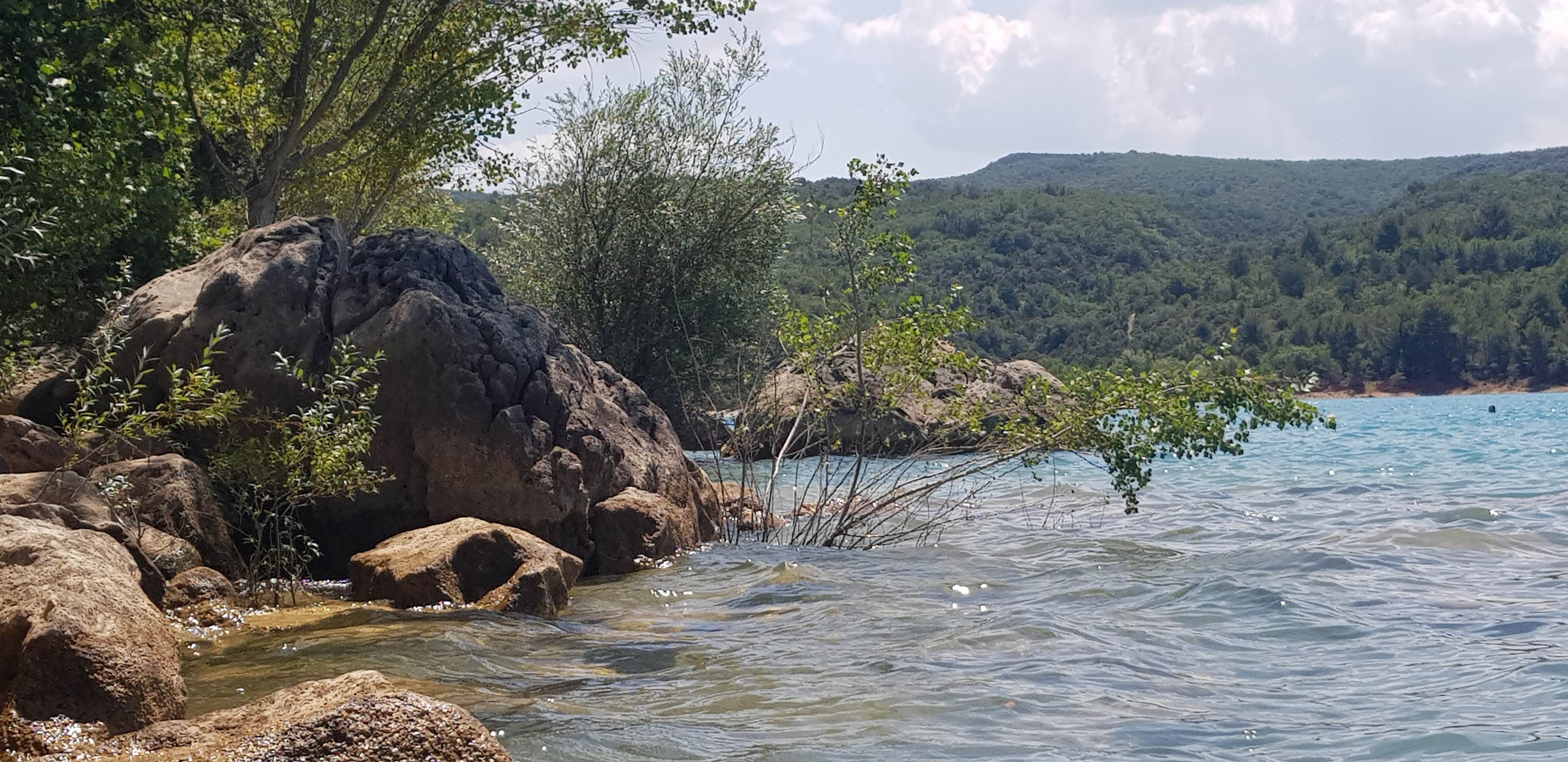 Cadre magnifique au pied du village Bauduen, en plein coeur d'un petit bois, mais le lac était envasé du fait de la forte baisse du niveau des eaux (moins 6-8 mètres).