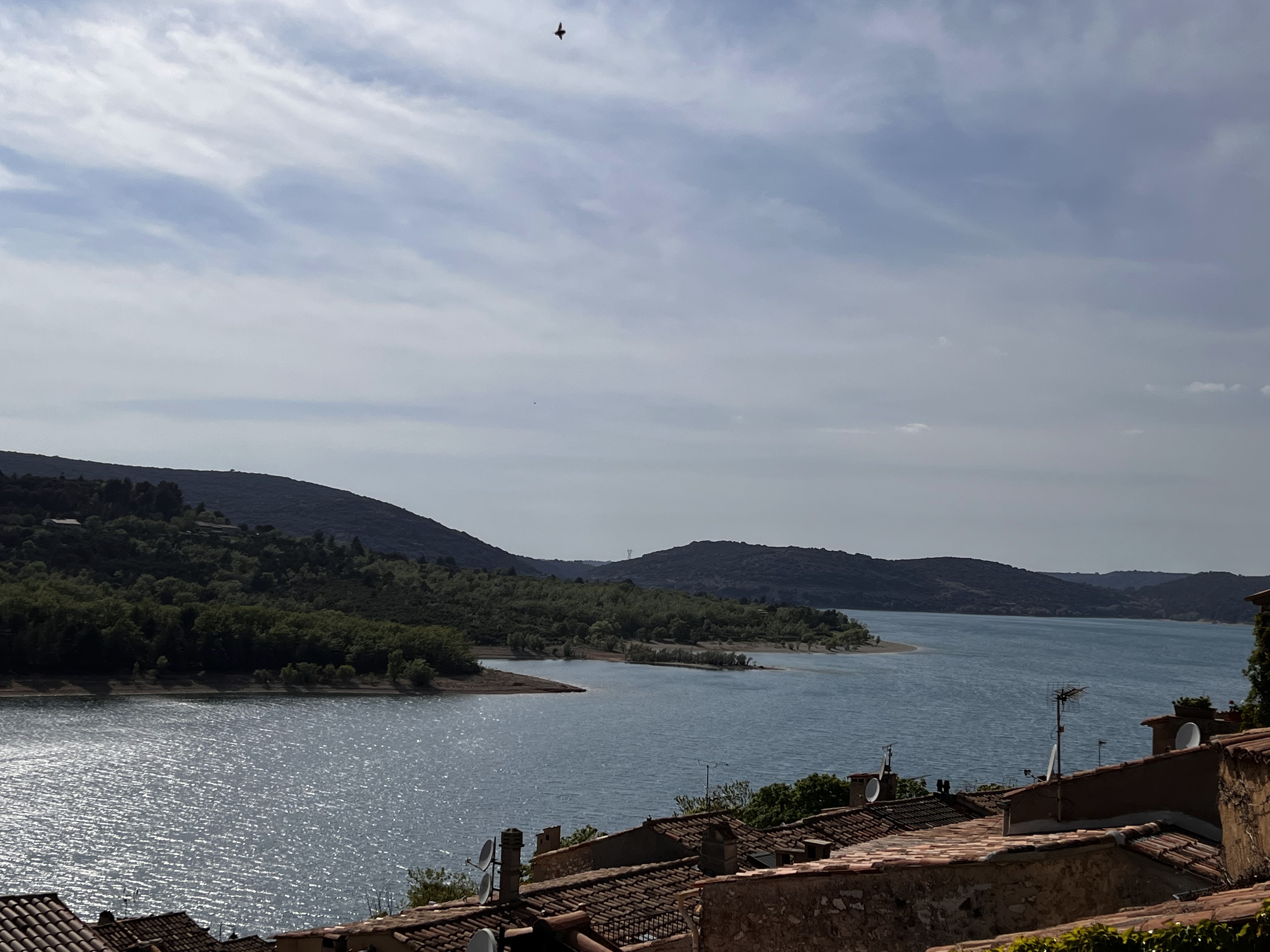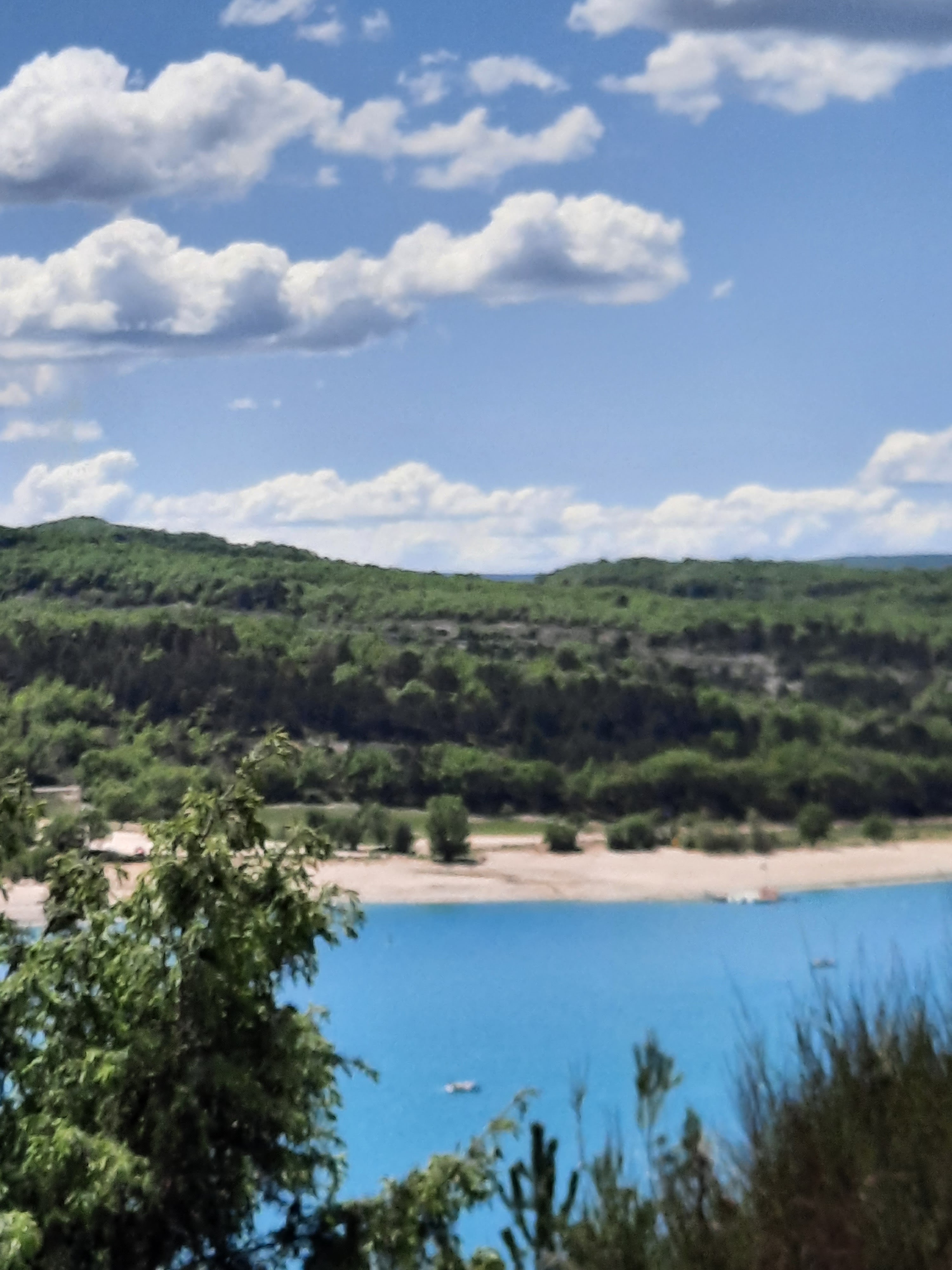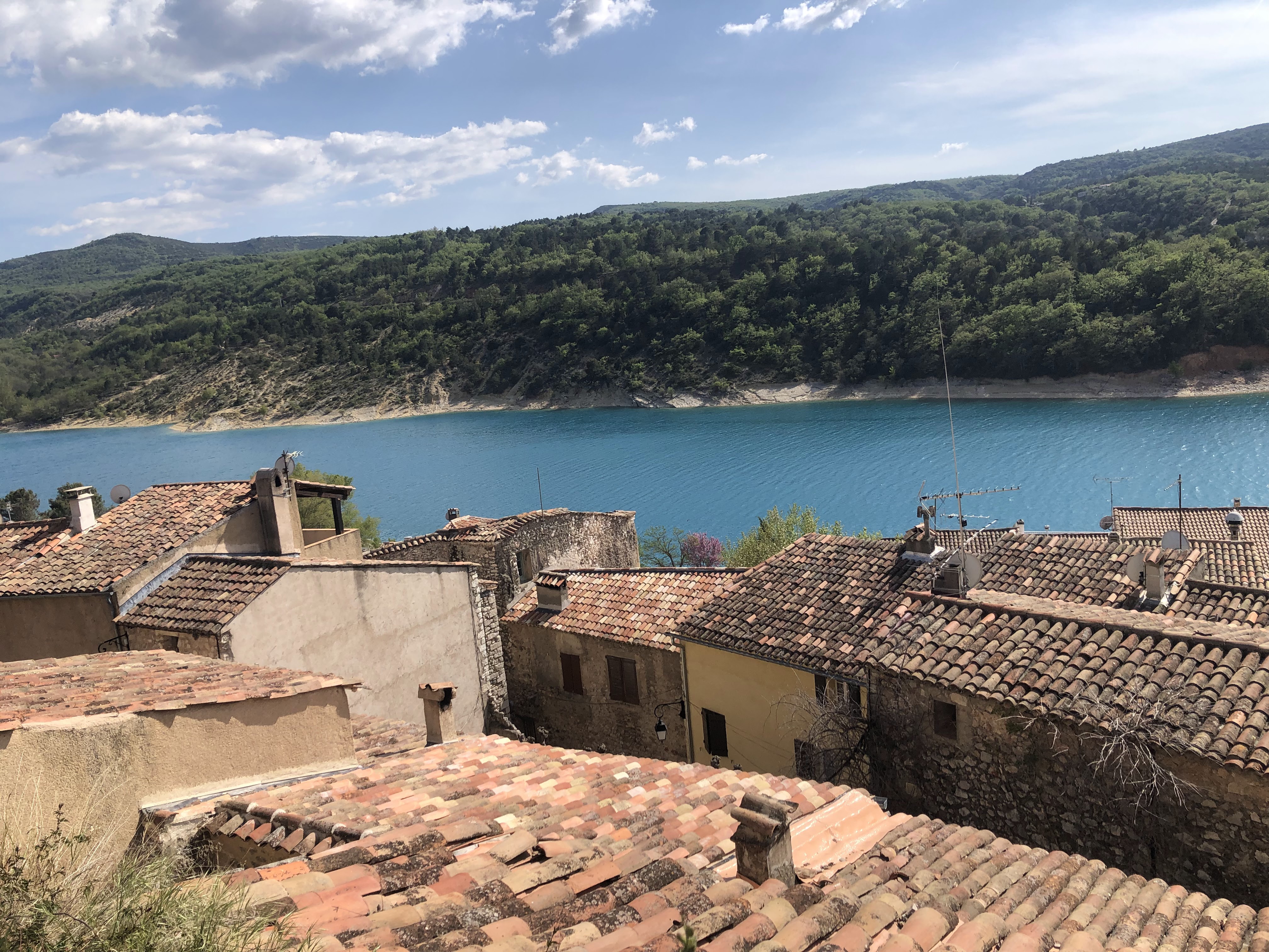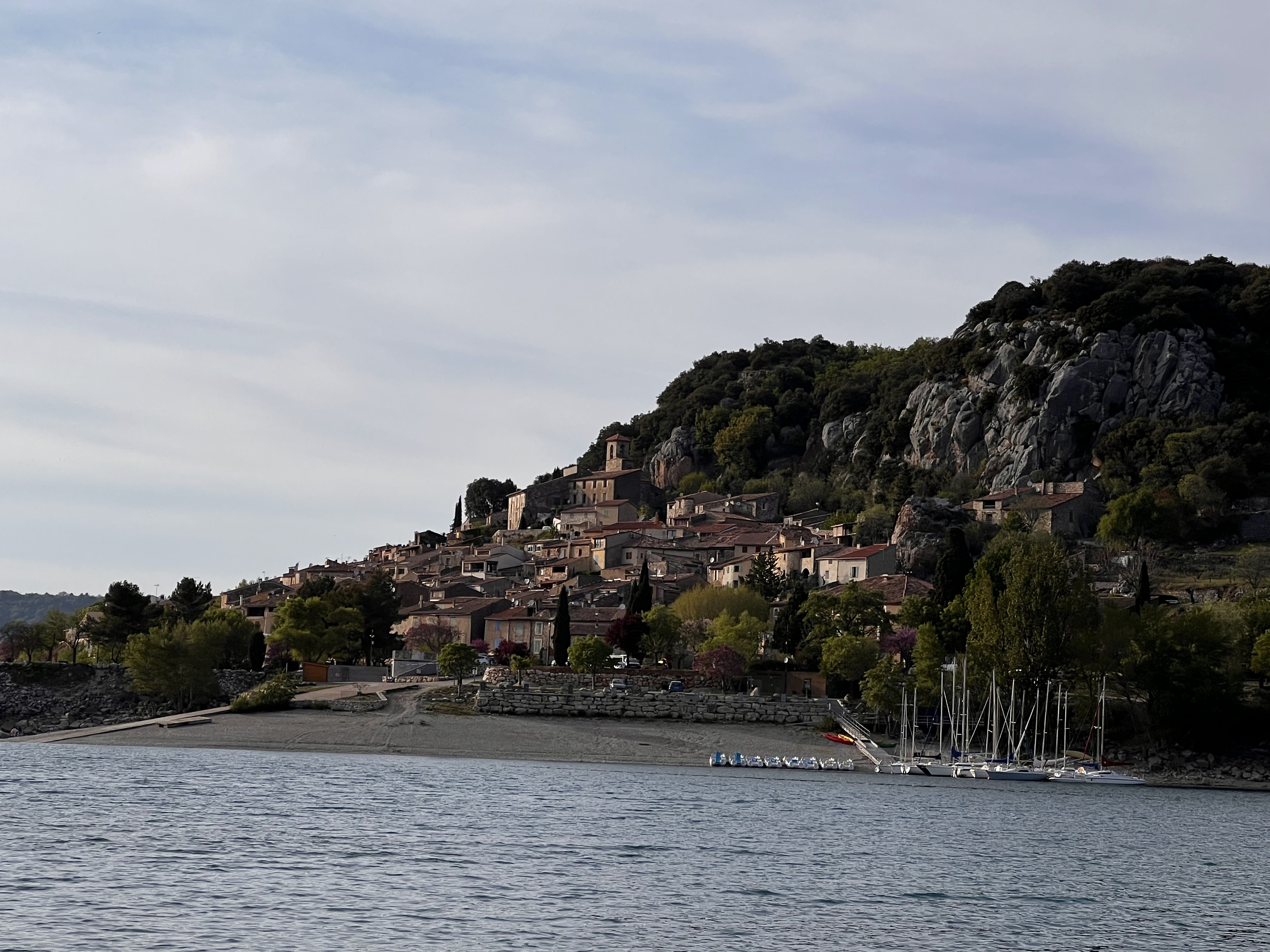 Cadre magnifique au pied du village Bauduen, en plein coeur d'un petit bois, mais le lac était envasé du fait de la forte baisse du niveau des eaux (moins 6-8 mètres).