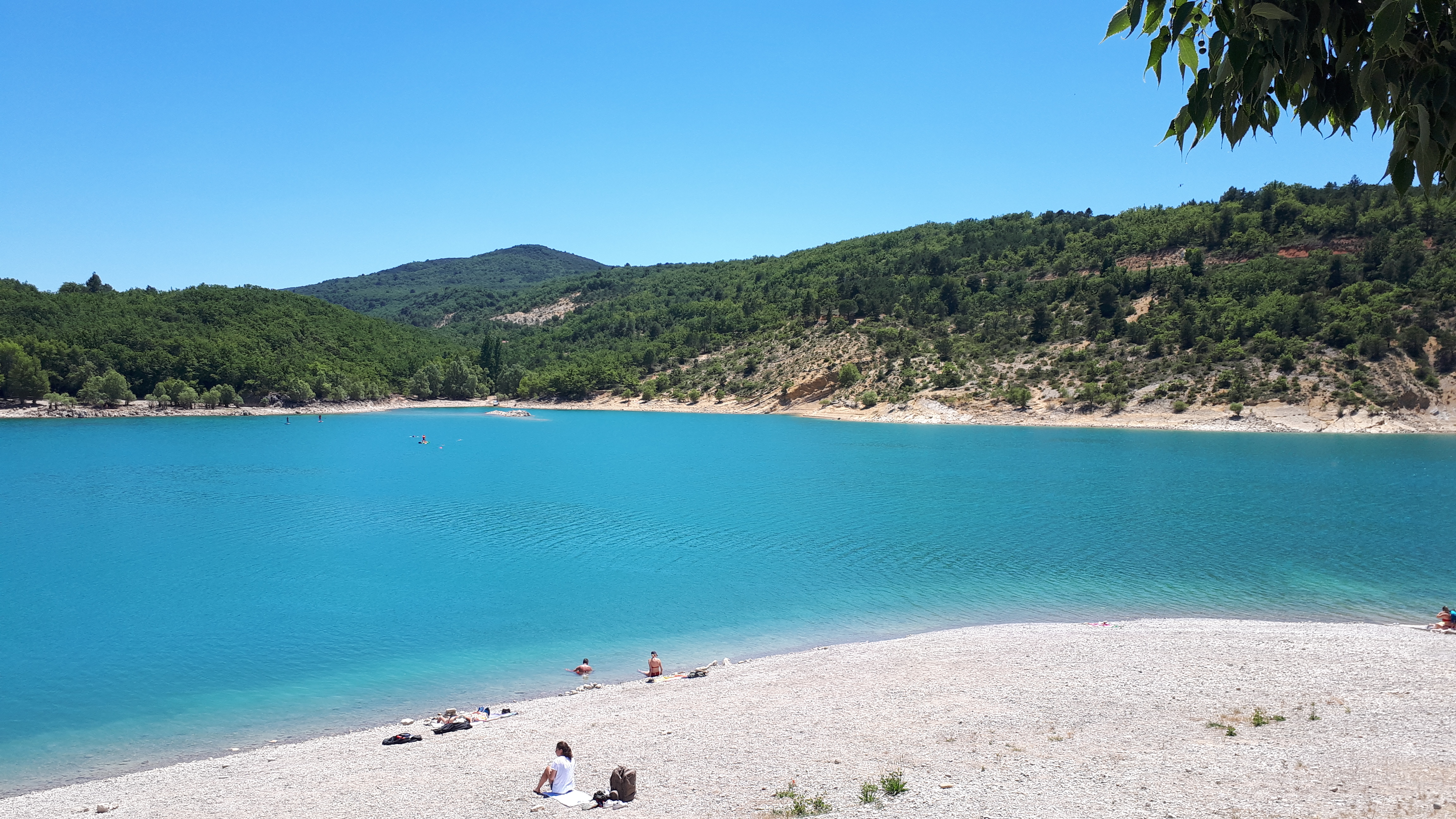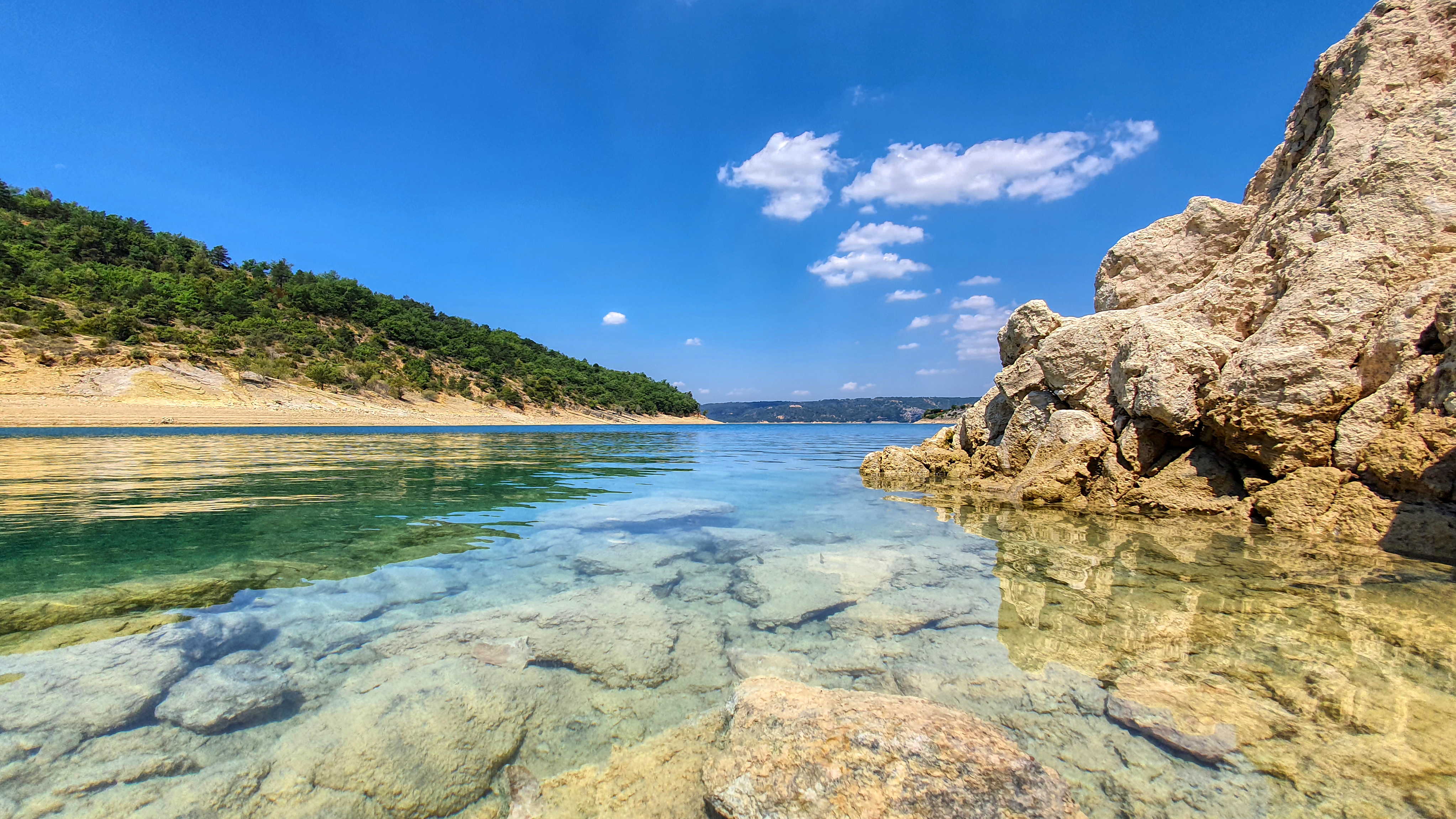 Eau transparente. Plage de petits cailloux, le décor vaut bien çà... Le lac de ste croix est une pure merveille