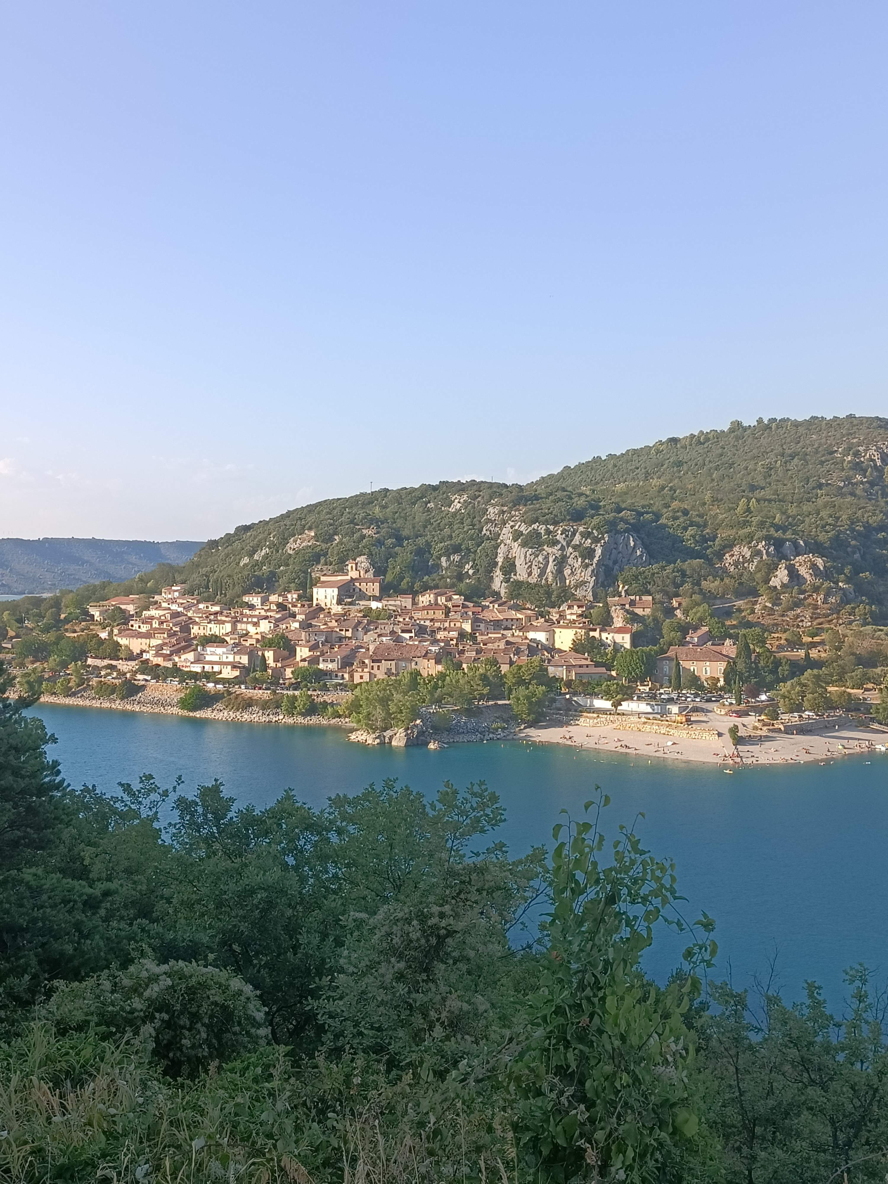 Très bonne plage de galets, mieux vaut prévoir les chaussures pour aller dans l'eau. Plage surveillée jusqu'à 18h, de quoi faire bateaux électriques, paddle, pédalo pour un tarif correct ! Vue ensuite sur le beau village de Bauduen depuis le lac. Couché de soleil superbe, hâte d'y retourner.