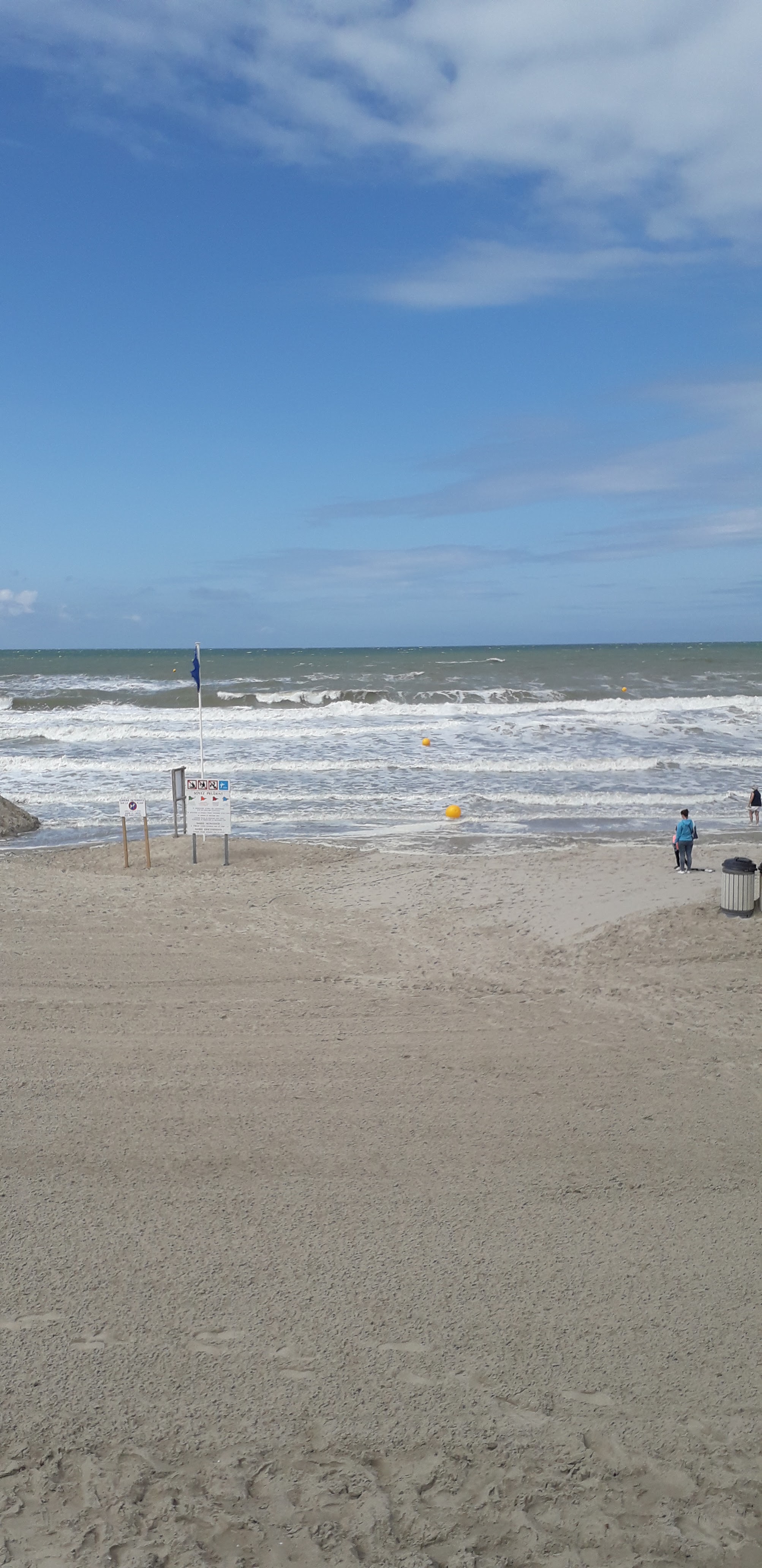 Grande plage de sable fin propre et surveillée quand nous y sommes allés le 14 juillet 2023. Un espace pour notre chien . Nous avons pû profiter tous ensemble.
