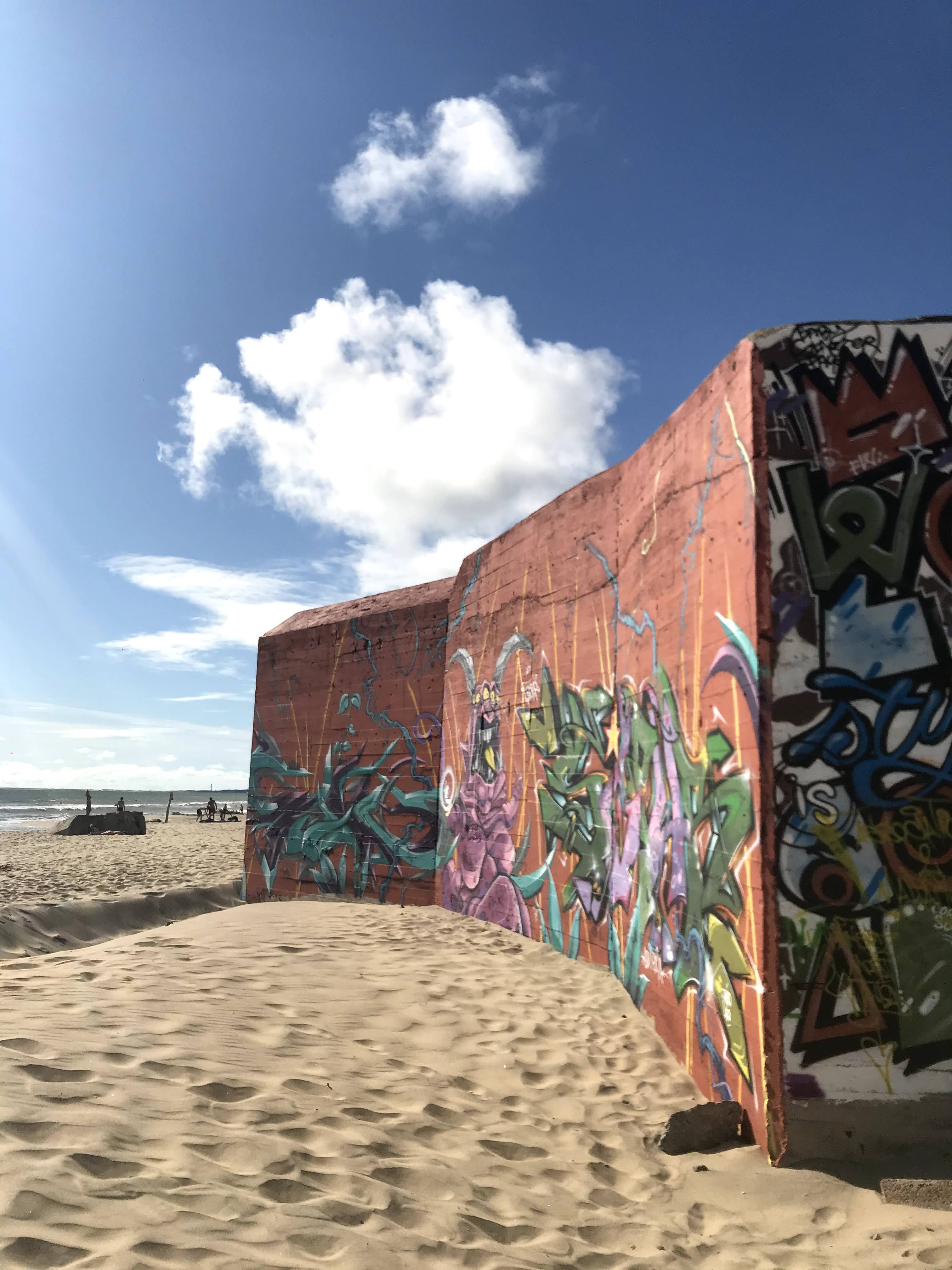 Très belle balade à faire Plage de la grande côte'' superbe longue plage le long d'une forêt de pins et de vilains blockhaus que des Artistes Tagueurs, ont su transformés en œuvres d'arts.