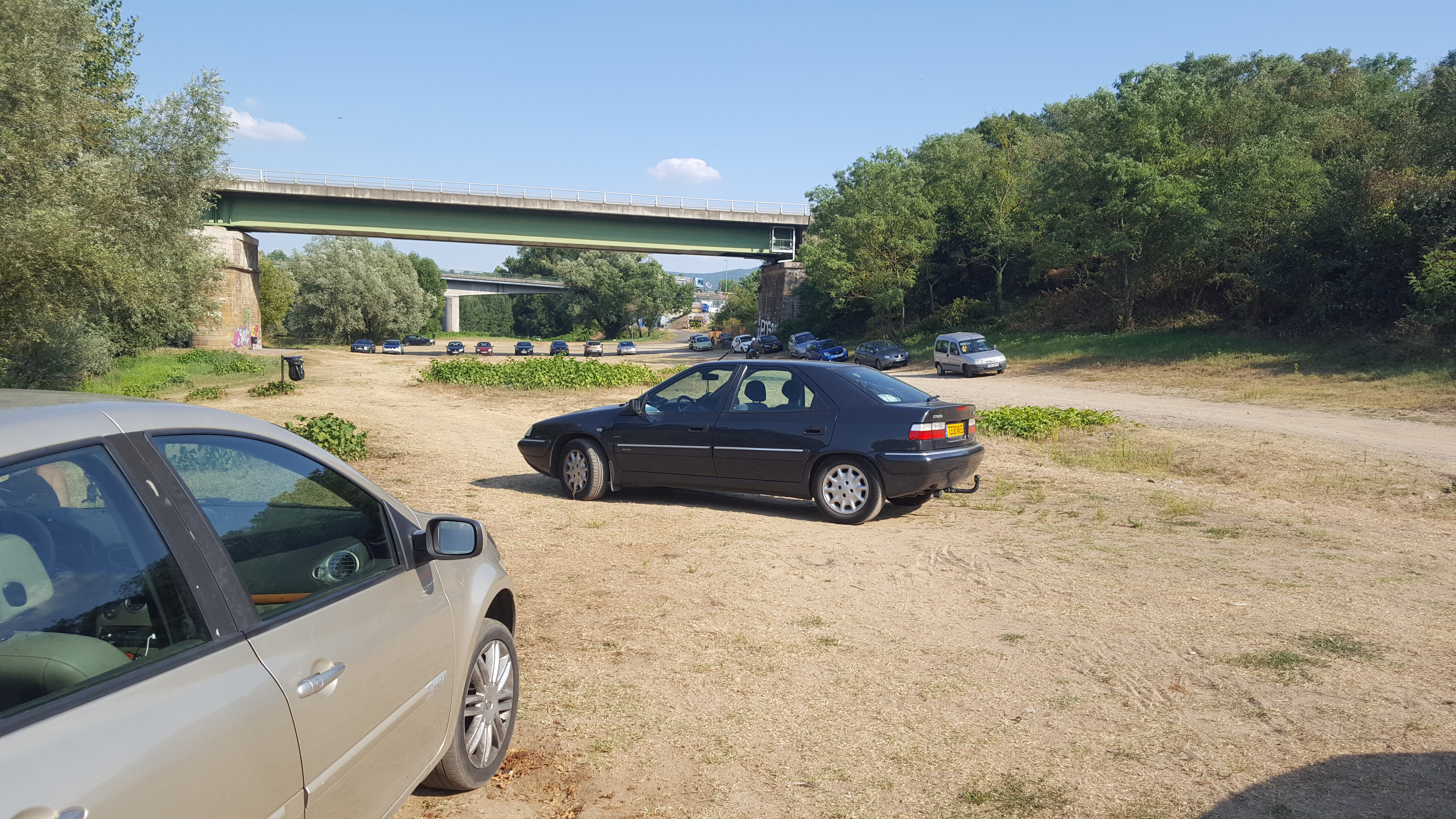 Plage de sable après être passé à pied sous le pont ferroviaire (parking juste à l'entrée de longues, suivre base nautique, canoë kayak) Baignade non surveillée puisque censée être interdite. Néanmoins agréable pour se rafraichir.