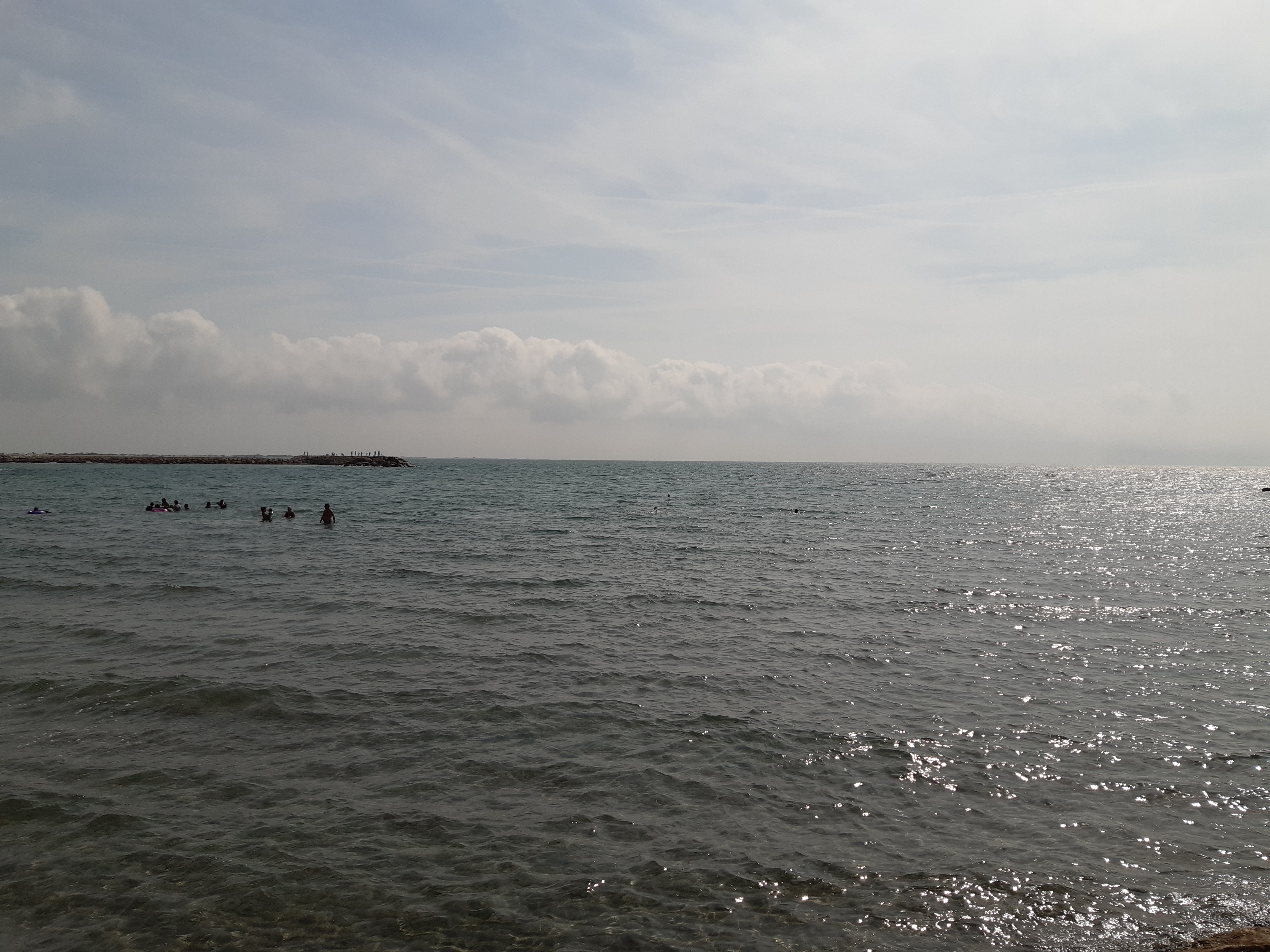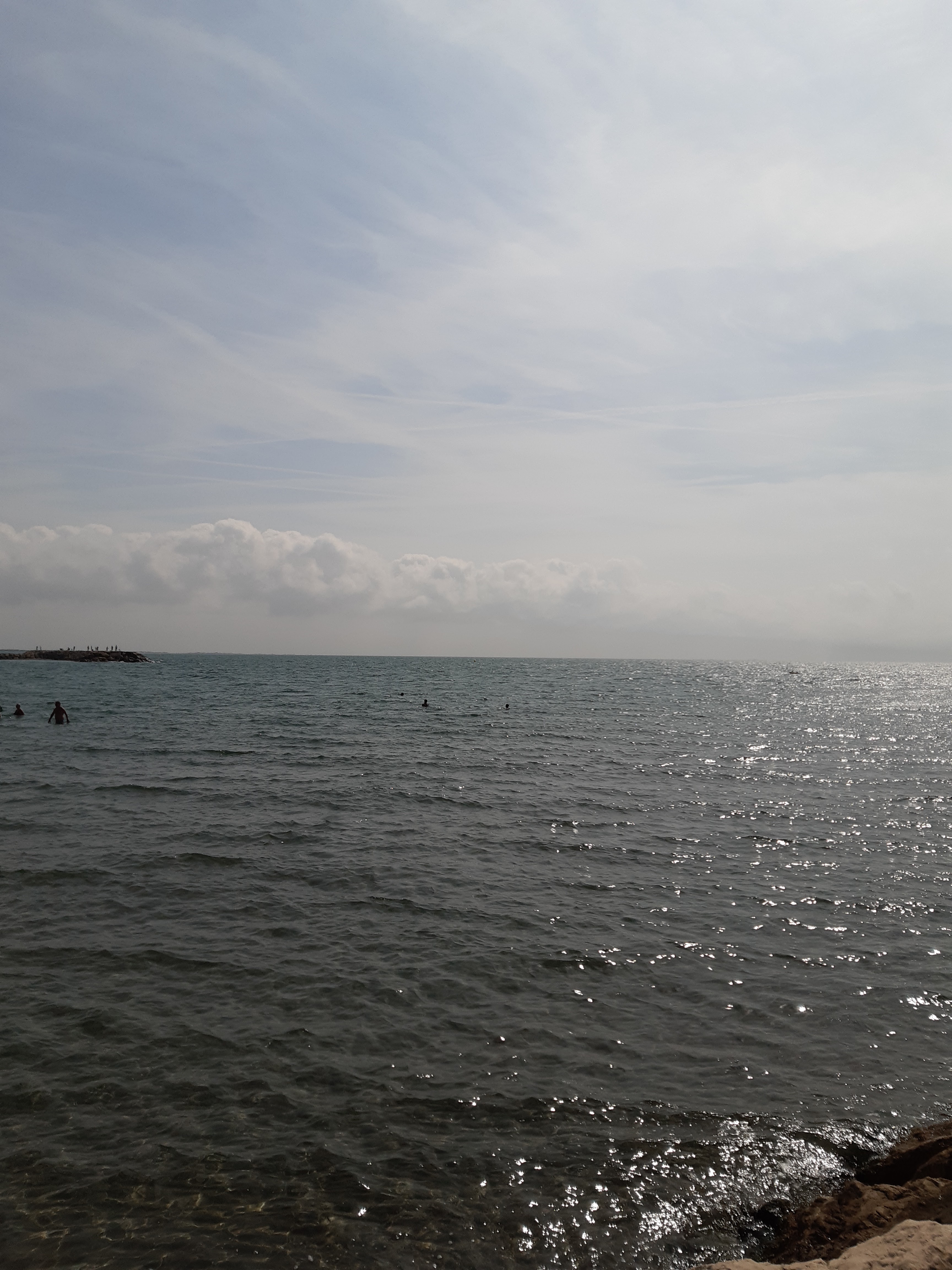 L'eau était encore très agréable malgré l'heure très tardive(20h). Ma famille et moi avons apprécié les pieds dans l'eau.
