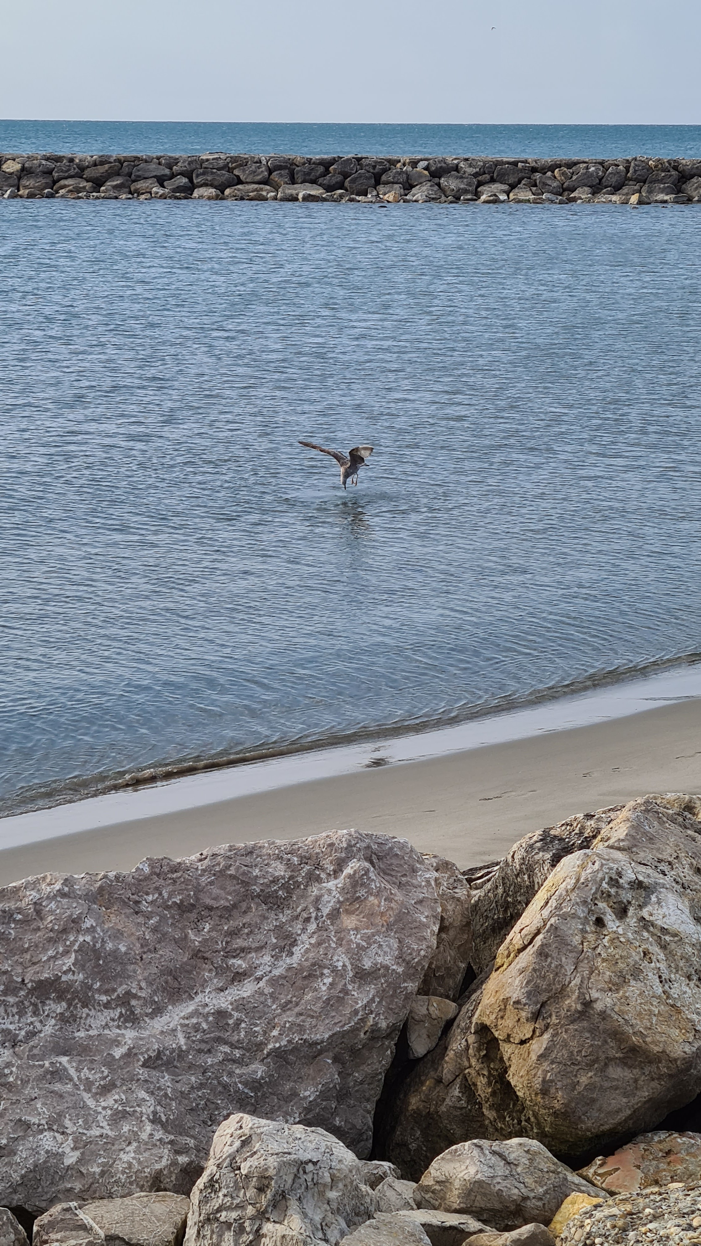 Très bonne promenade avec ma chienne, de beaux gros rochers, des coquillages, des gens qui se promenent à cheval blanc, les mouettes, des flamands roses en liberté mais un peu loin car sol marécageux.