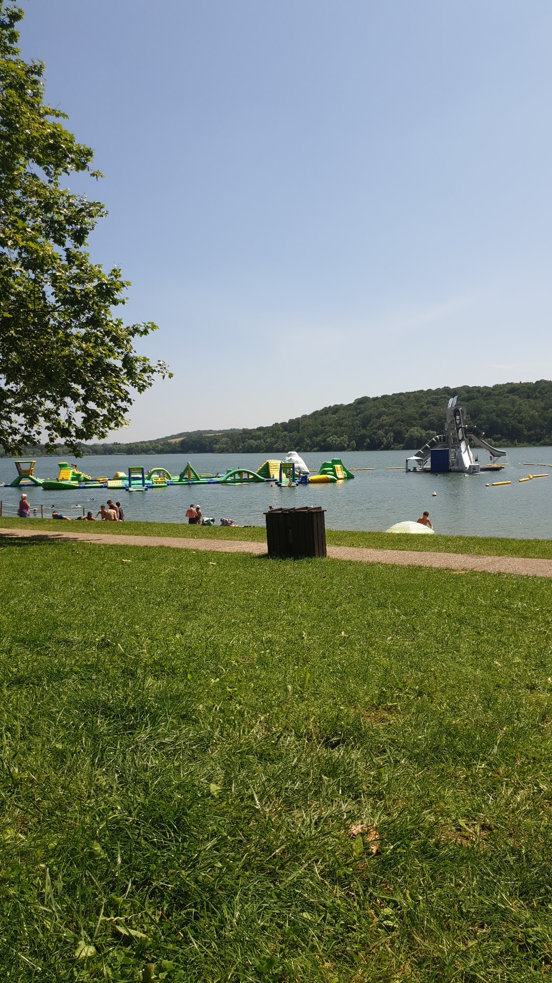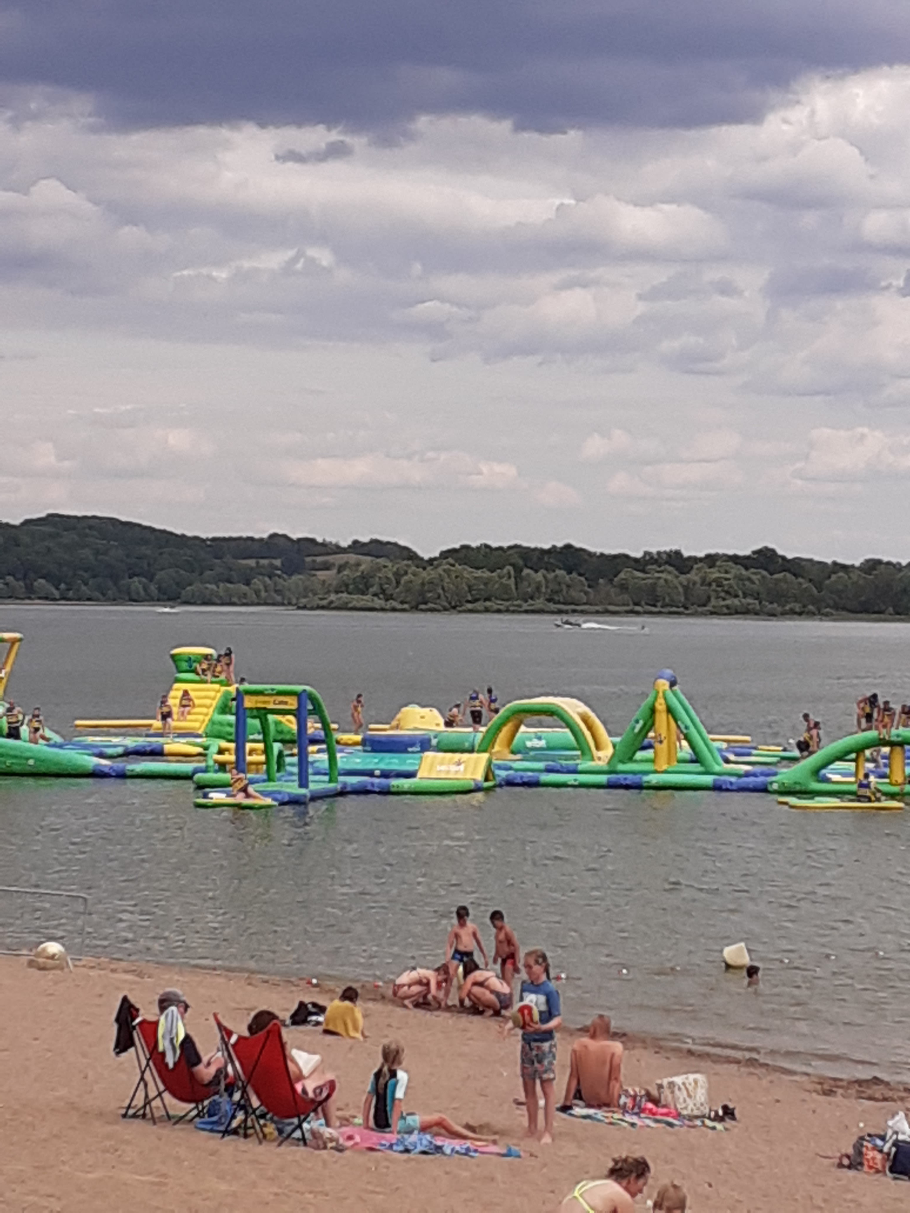 Par beau temps, il peut être assez exigu, mais il faut s'y attendre. Le lac lui-même était chaud mais suffisamment frais pour une baignade agréable par une journée étouffante. Le parcours gonflable sur le lac était également excellent pour les enfants.