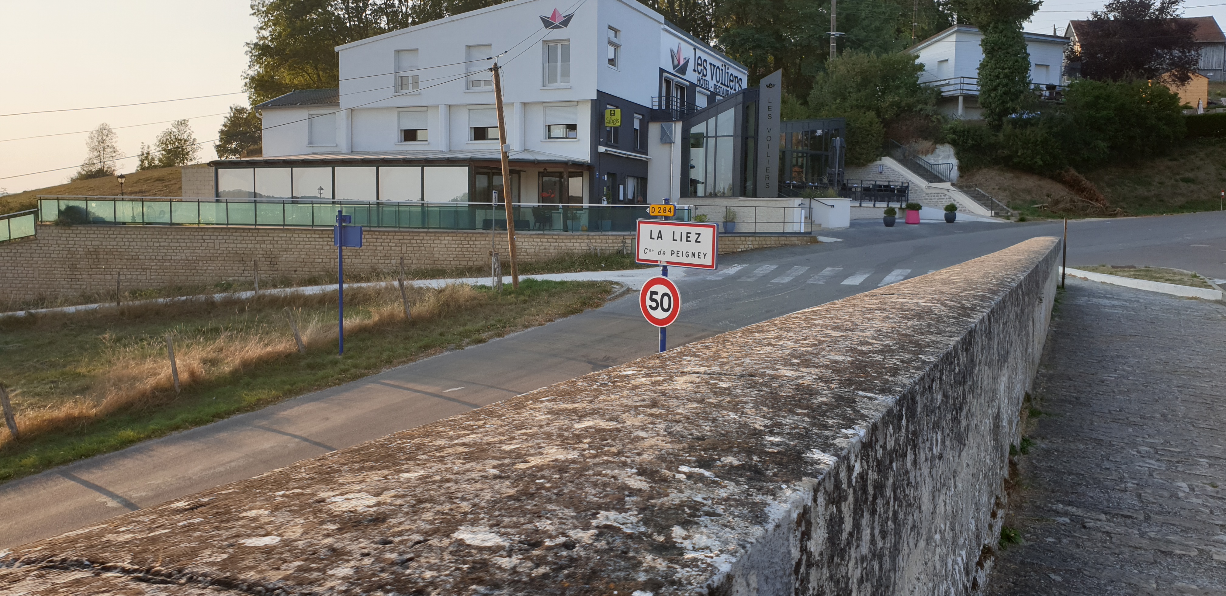 A vélo depuis Langres. Le retour est très difficile. Presque tout est fermé. Sauf un hôtel.