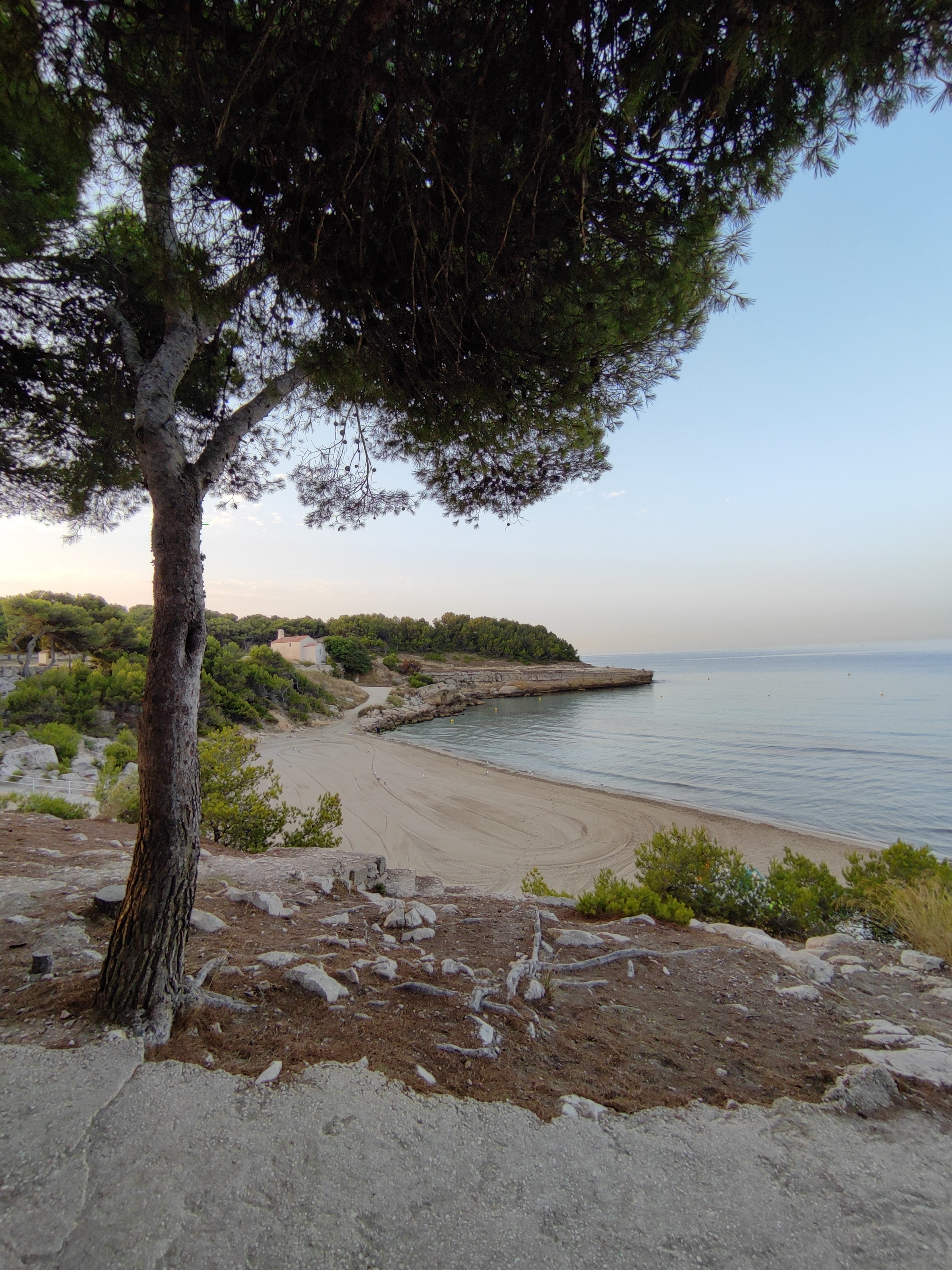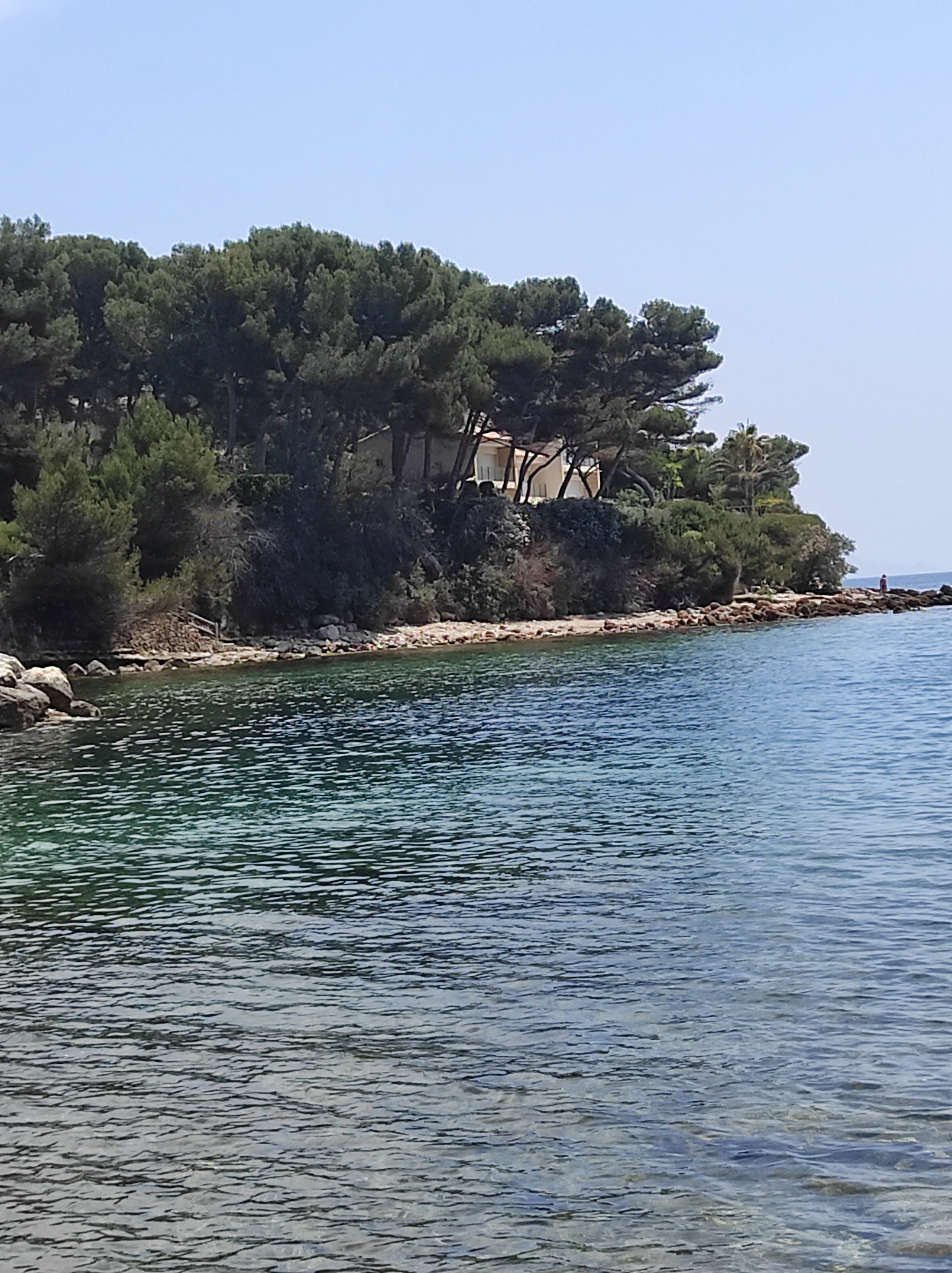 Belle plage avec une partie en sable et une partie en cailloux et galets. Un beau décor de roches, de pins, de belles villas accrochées à la falaise,... Attention! Parking de la plage payant.