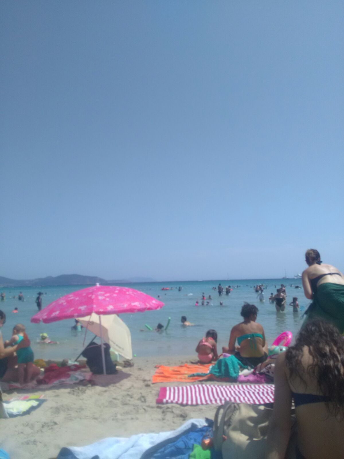 Belle plage de sable beaucoup de monde peu d ombre eau propre