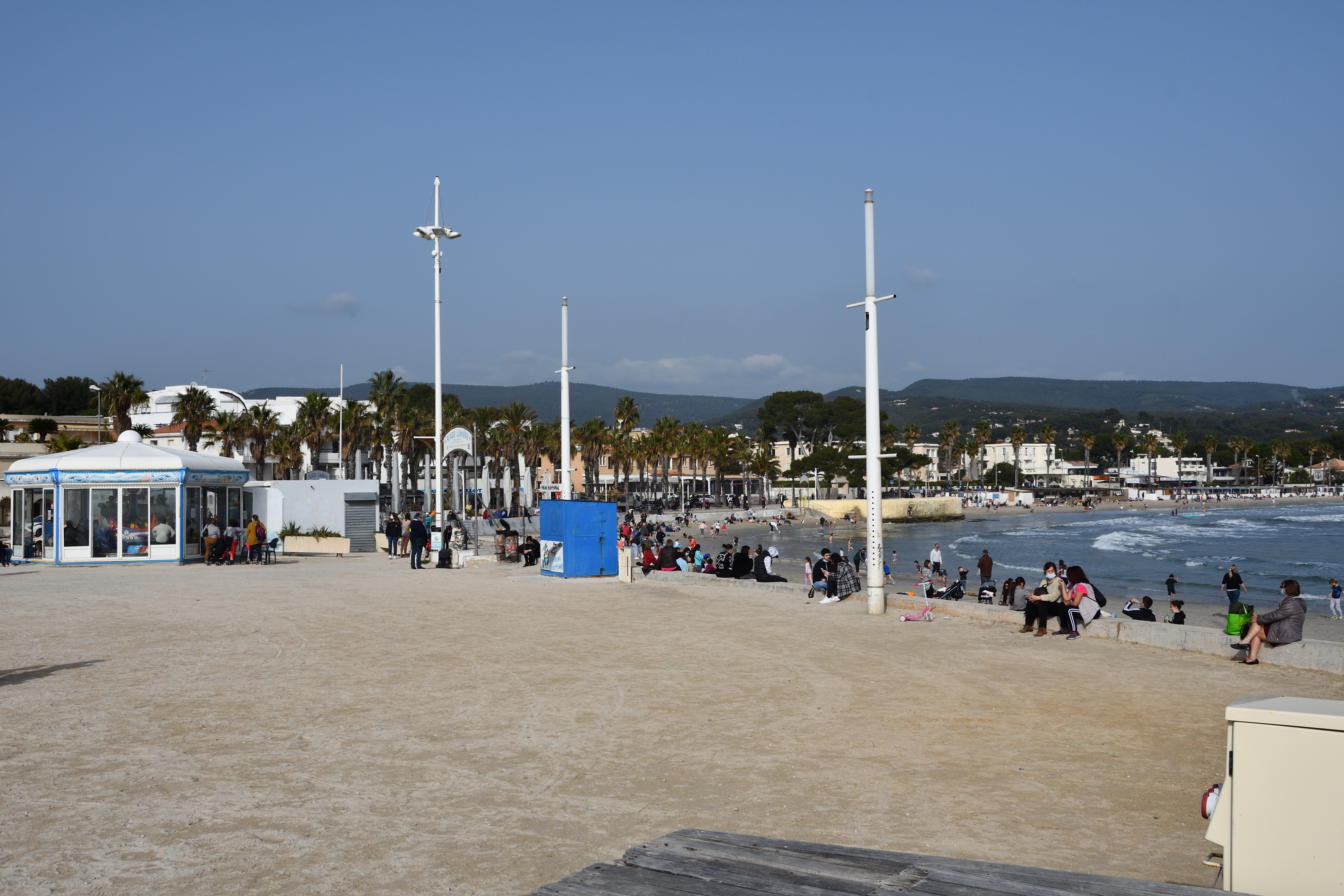 Plage de sable blanc visité en avril juste avant l’ouverture des restaurants - superbe Possible de se garer dans les rues adjacentes payant