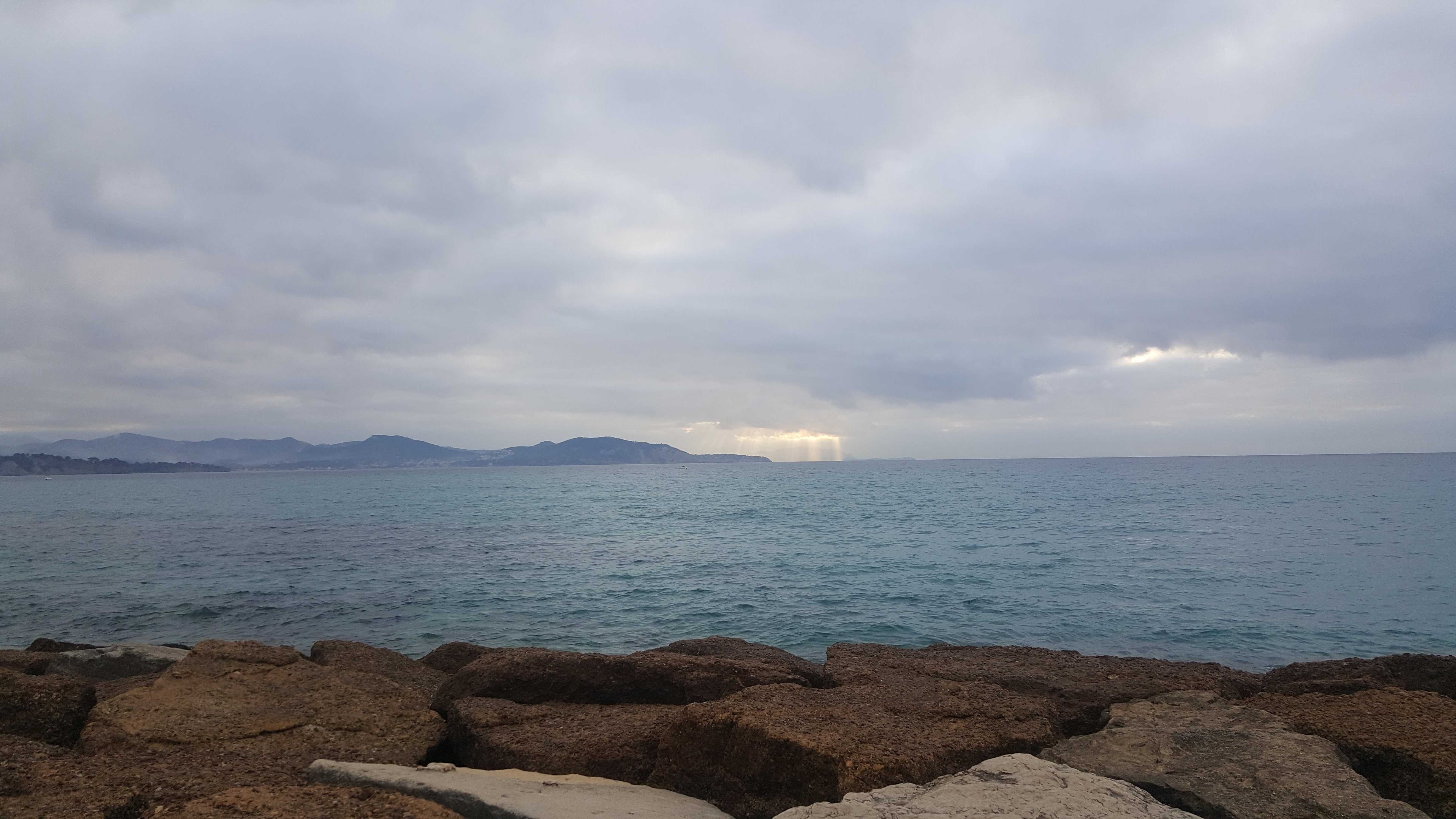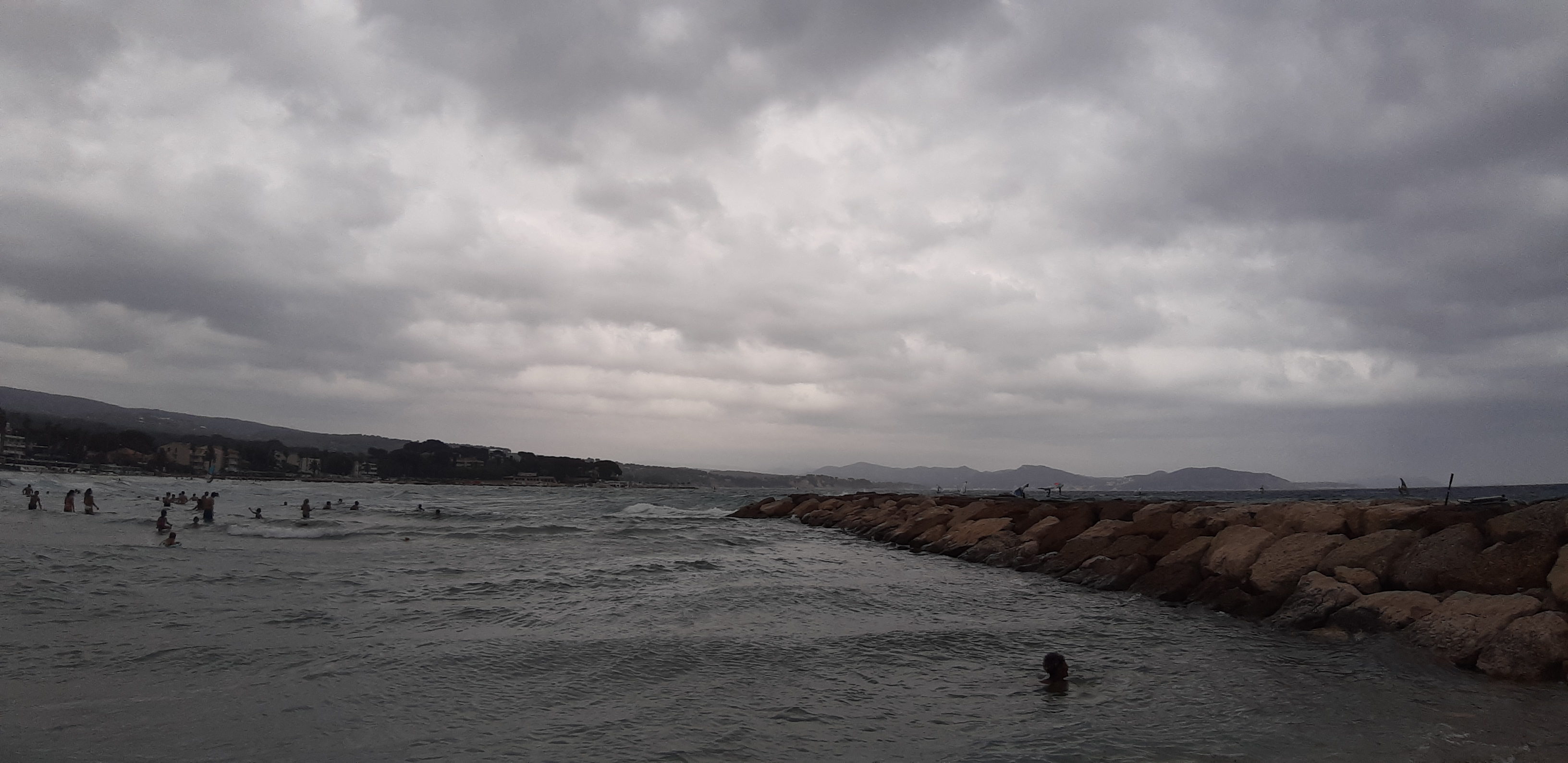 Gris le temps donc moins beau mais la mer nagnifique