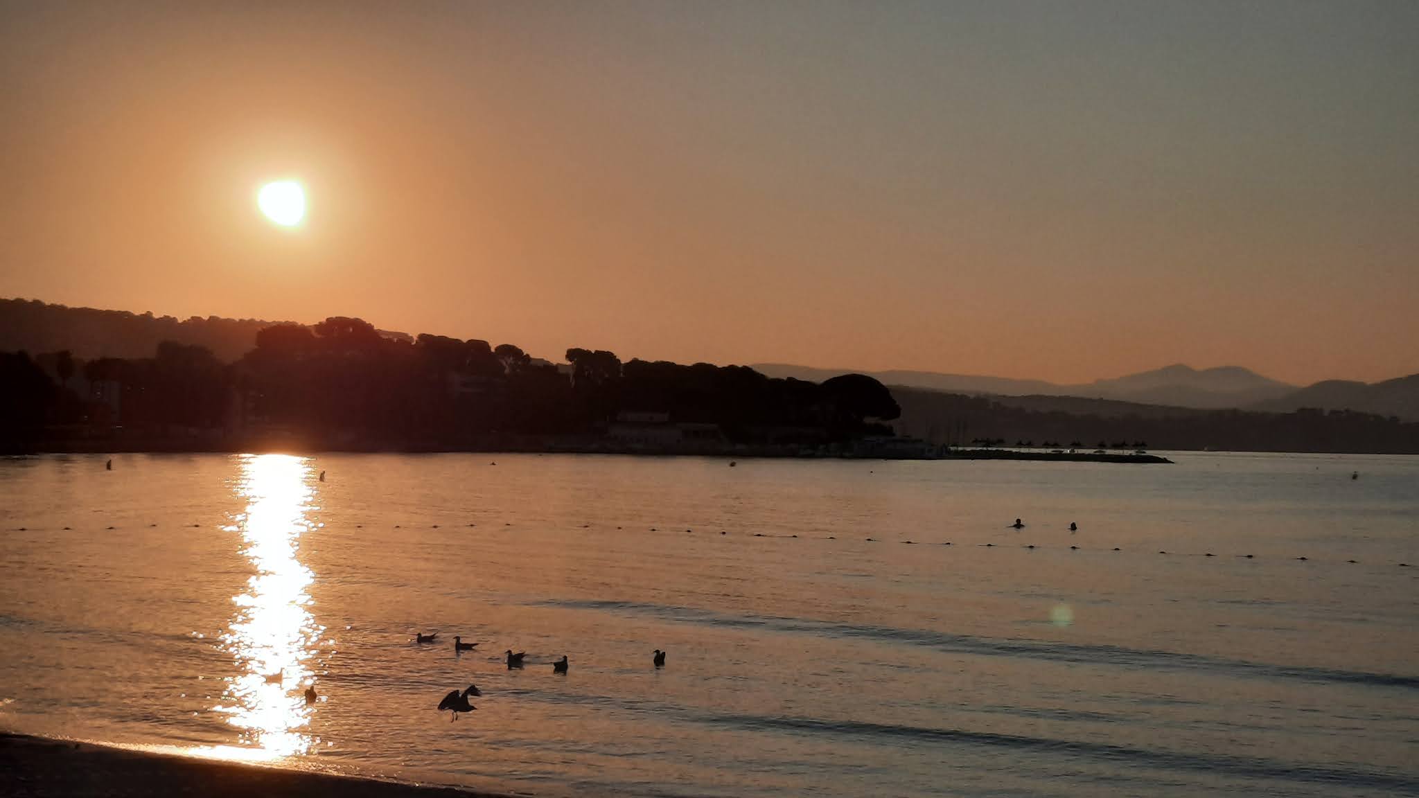 Une vue superbe sur la plage,la mer,la colline,le remblai bordé de magnifiques palmiers surtout au soleil couchant...
