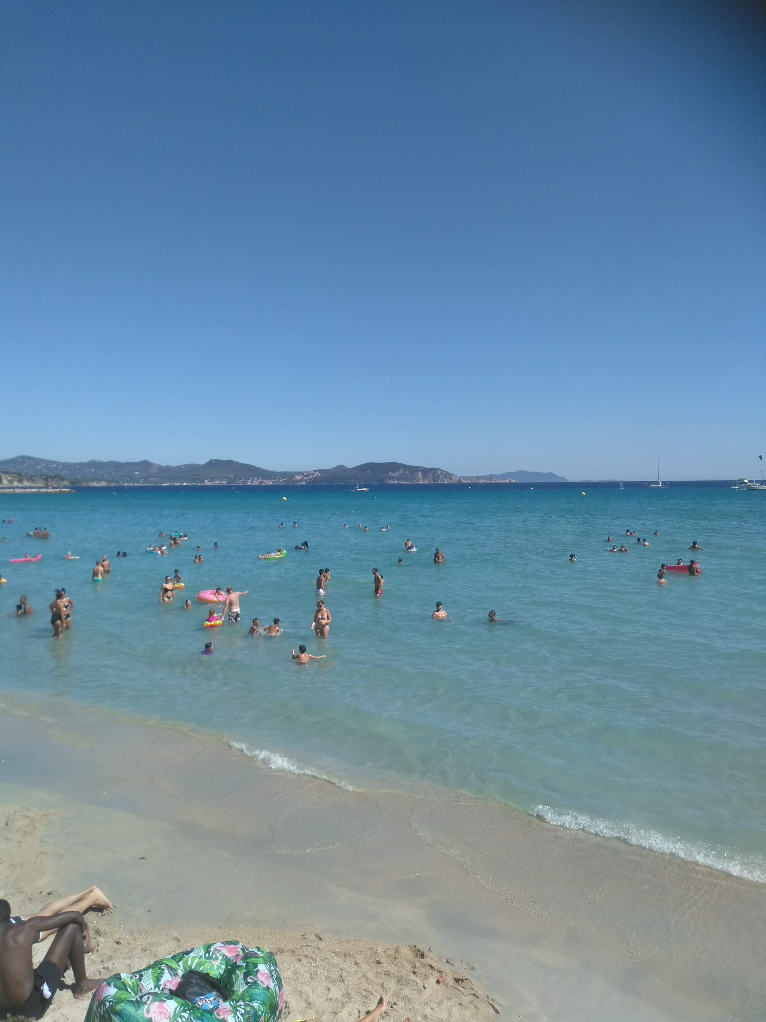 Belle plage en plein juillet du monde mais non bruyante, population respectueuse , au bord de paillotes et restauration. Mer limpide