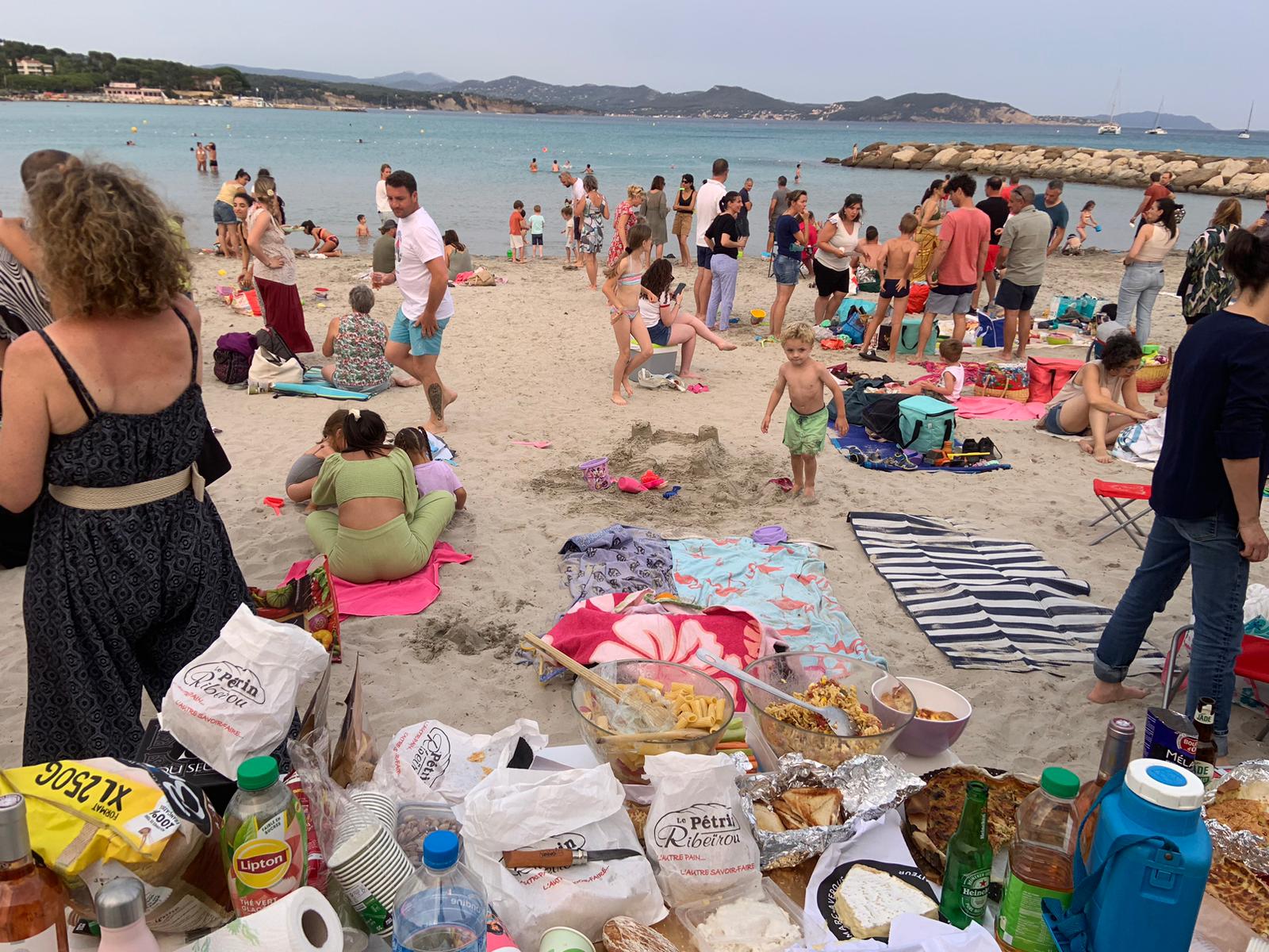 Plage avec une belle fréquentation, temps plein soleil...