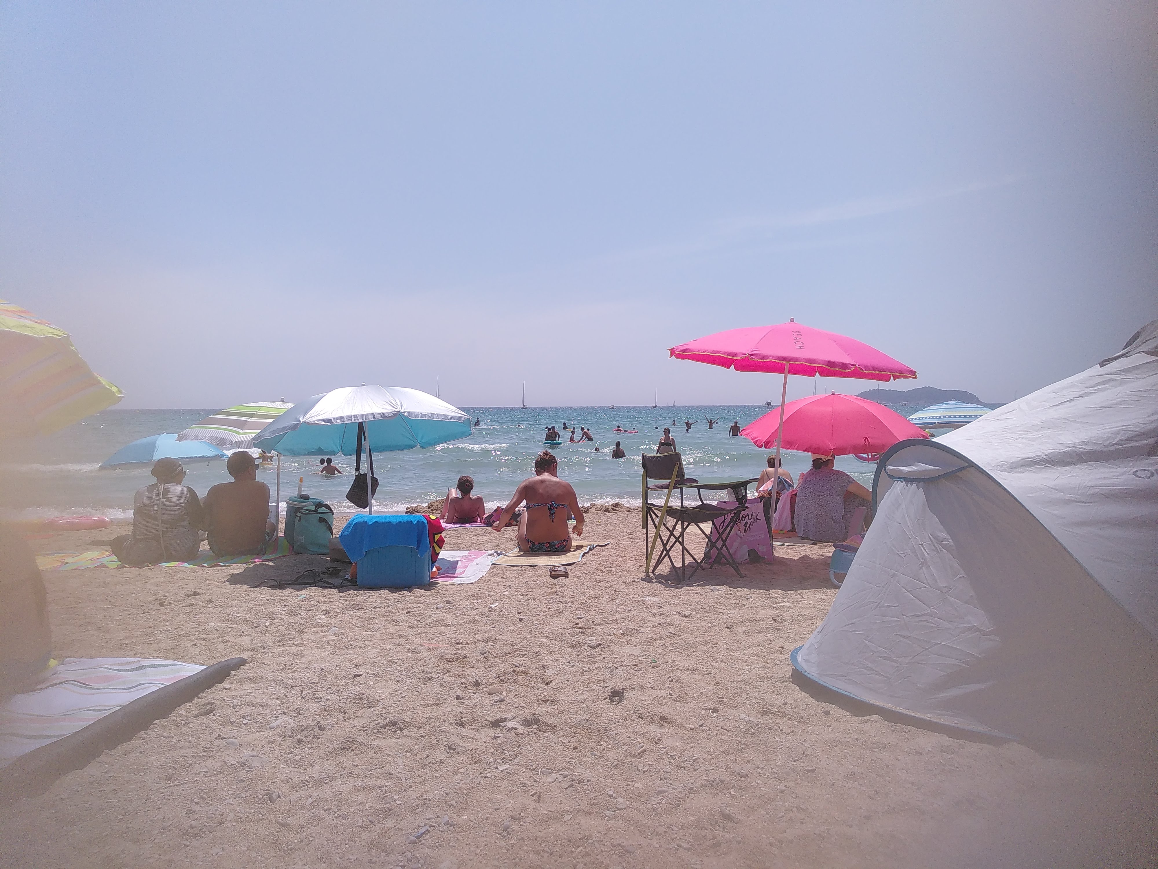 Dommage, l'eau était très fraiche, suite au passage du mistral...mais la plage pas bondée contrairement à d'habitude, et la terrasse du bar au dessus fort accueillante et sympathique