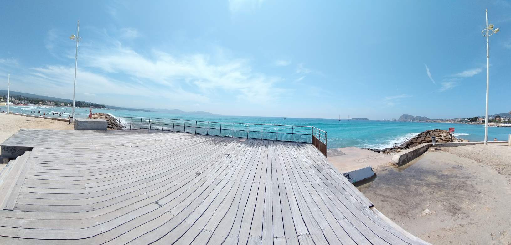 Super plage pratique pour les poussettes car rampe qui mène au sable . Nous avons pied assez loin idéale pour les enfants .Dommage cependant qu'il n'y ai pas assez de douches le long des plages sinon rien d'autre à rajouter